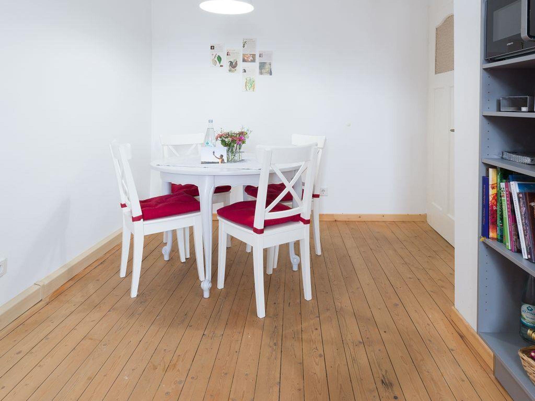 Neurenovierte helle und freundliche Wohnungen. Beide Wohnungen haben eine Einbauküche, Leseecke mit Schreibtisch und gemütlichem Sessel, Badezimmer mit Dusche/WC. WLAN, TV, Radio, großer Bücherschrank, Waschmaschine mit Trockner. Getränkekorb als Minibar.Wohnen mit Büchern hat eine Schlafzimmer mit Doppelbett und ein Schlafzimmer mit zwei Einzelbetten. Darüber hinaus existiert auch im Wohnzimmer eine Bettcouch, die bei Bedarf auch genutzt werden kann. Im Bücherloft gibt es ein doppeltes Schlafzimmer und zwei Bettcouchen im Wohnzimmer. Ein Babybett stellen wir auf Anfrage.