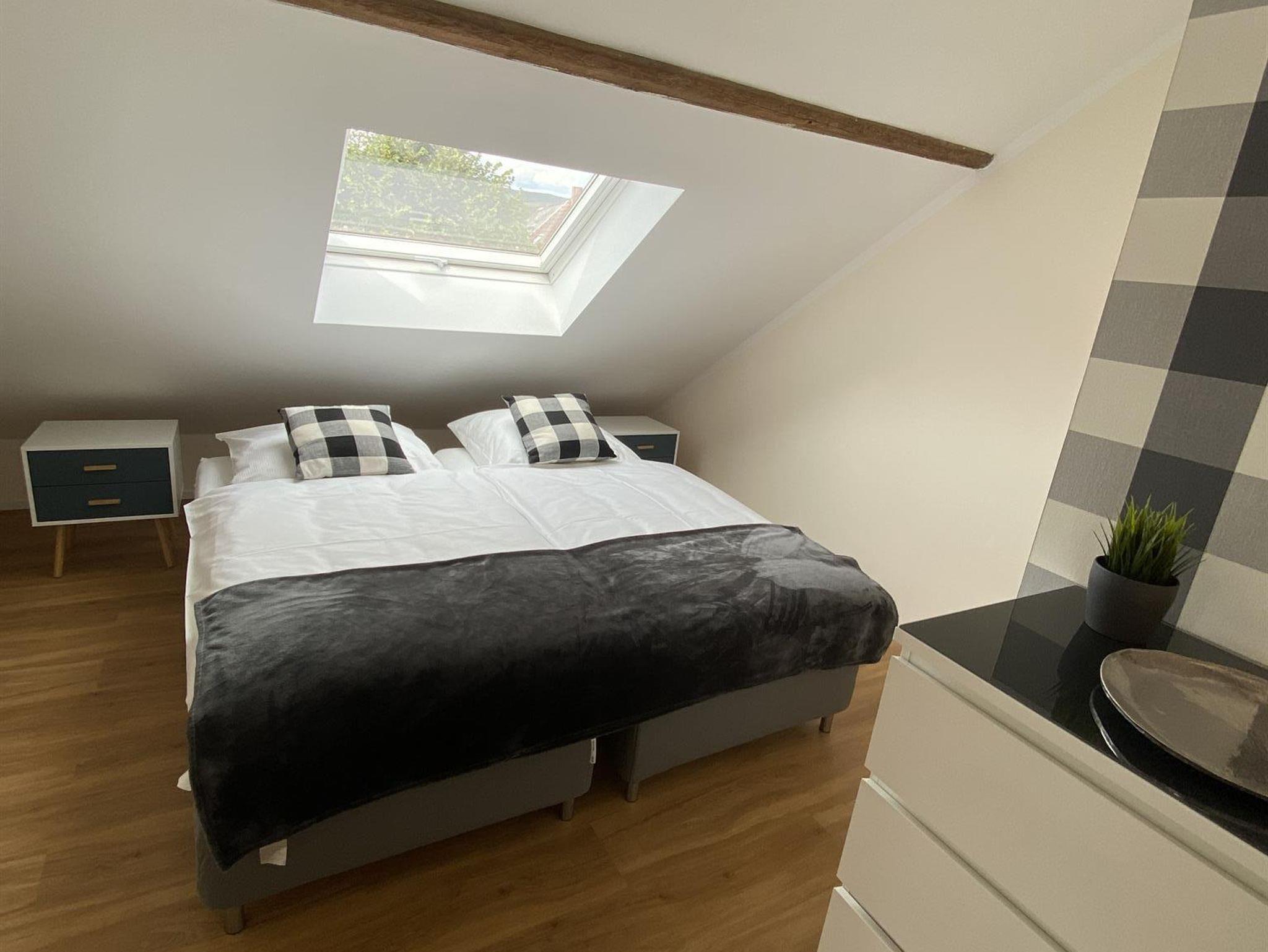 Diese helle 90 m² Maisonette-Wohnung in einem historischen Gebäude bietet Platz für bis zu 4 Personen. Zwei Schlafzimmer mit flexiblen Doppelbetten, ein gemütliches Wohnzimmer mit Smart/Sat-TV und eine hochwertig ausgestattete Küche lassen keine Wünsche offen. Fußbodenheizung sorgt für Komfort, das separate WC für zusätzlichen Luxus. Auf der Terrasse oder im Wellnessgarten mit Sauna & Whirlpool lässt es sich wunderbar entspannen. WLAN & Parkplatz kostenlos.