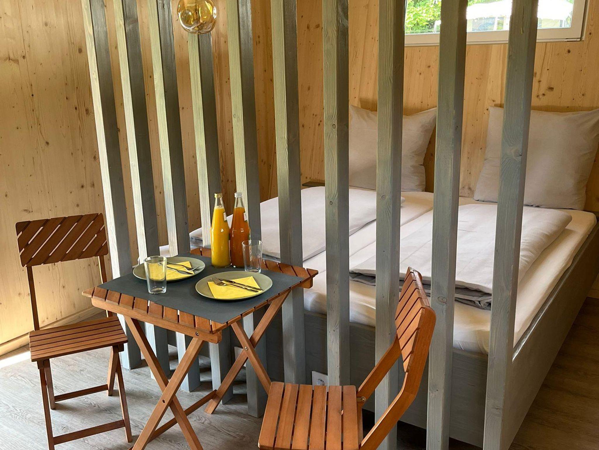 Das HappyNest bietet alles für einen entspannten Aufenthalt: Ein komfortables Queen-size-Bett (140×200 cm) sorgt für erholsamen Schlaf, und der großzügige Stauraum lässt Sie sich wie zu Hause fühlen. Ein praktischer Kühlschrank hält Ihre Getränke kühl, während Steckdosen (230V) das Aufladen Ihrer Geräte ermöglichen. Für gemütliche Mahlzeiten stehen ein Tisch und zwei Stühle bereit. Das Highlight ist die überdachte Terrasse mit Sonnensegel, perfekt, um die frische Luft zu genießen. Das HappyNest kombiniert Komfort und Camping-Feeling – Ihr glückliches Zuhause fernab von Zuhause!