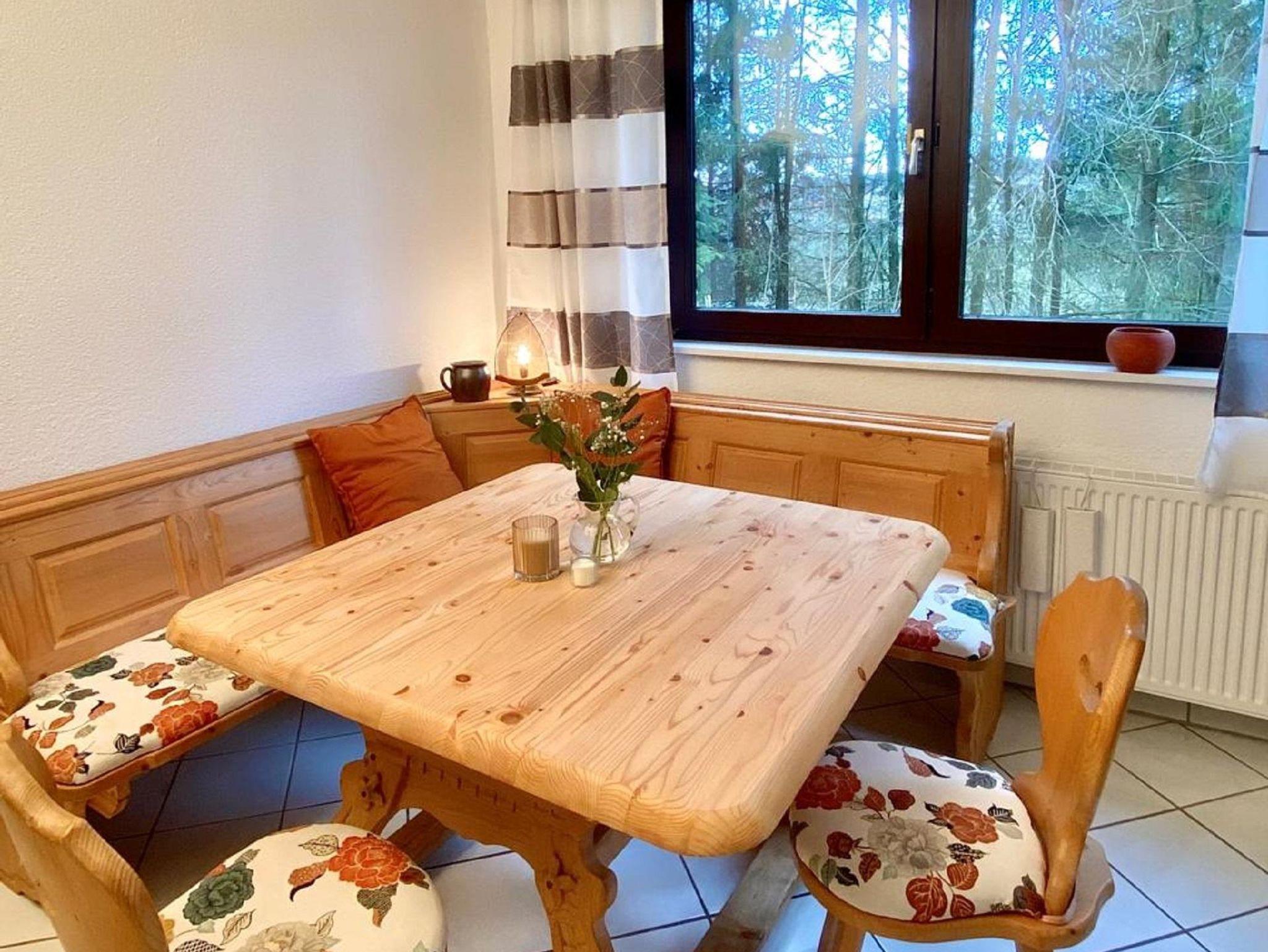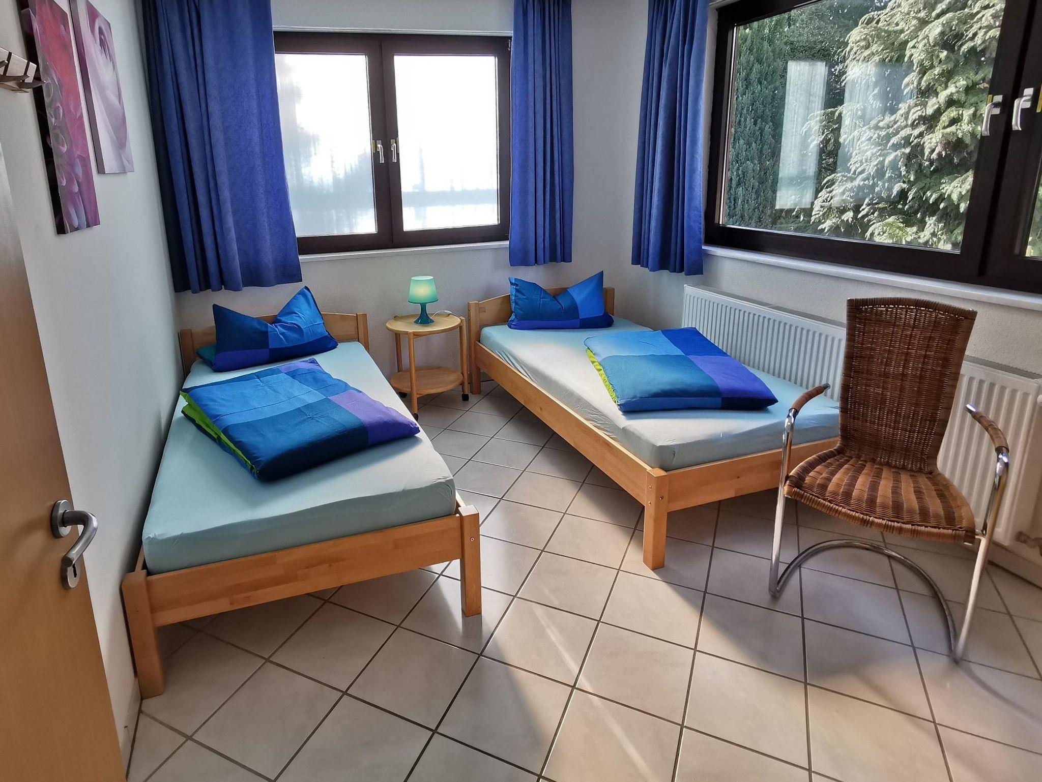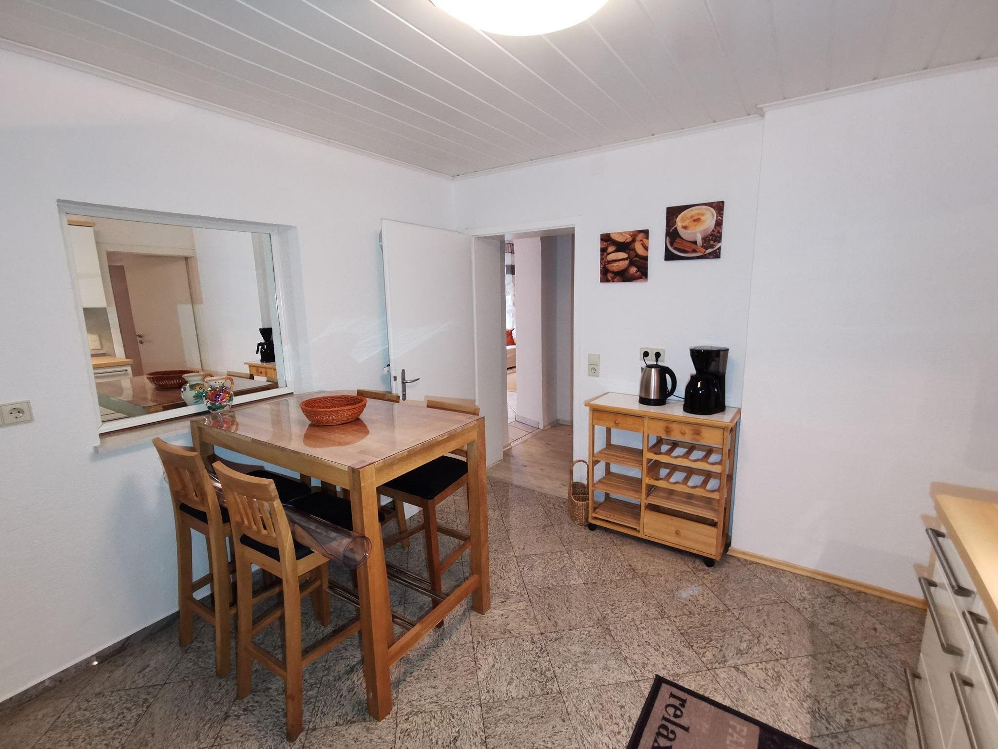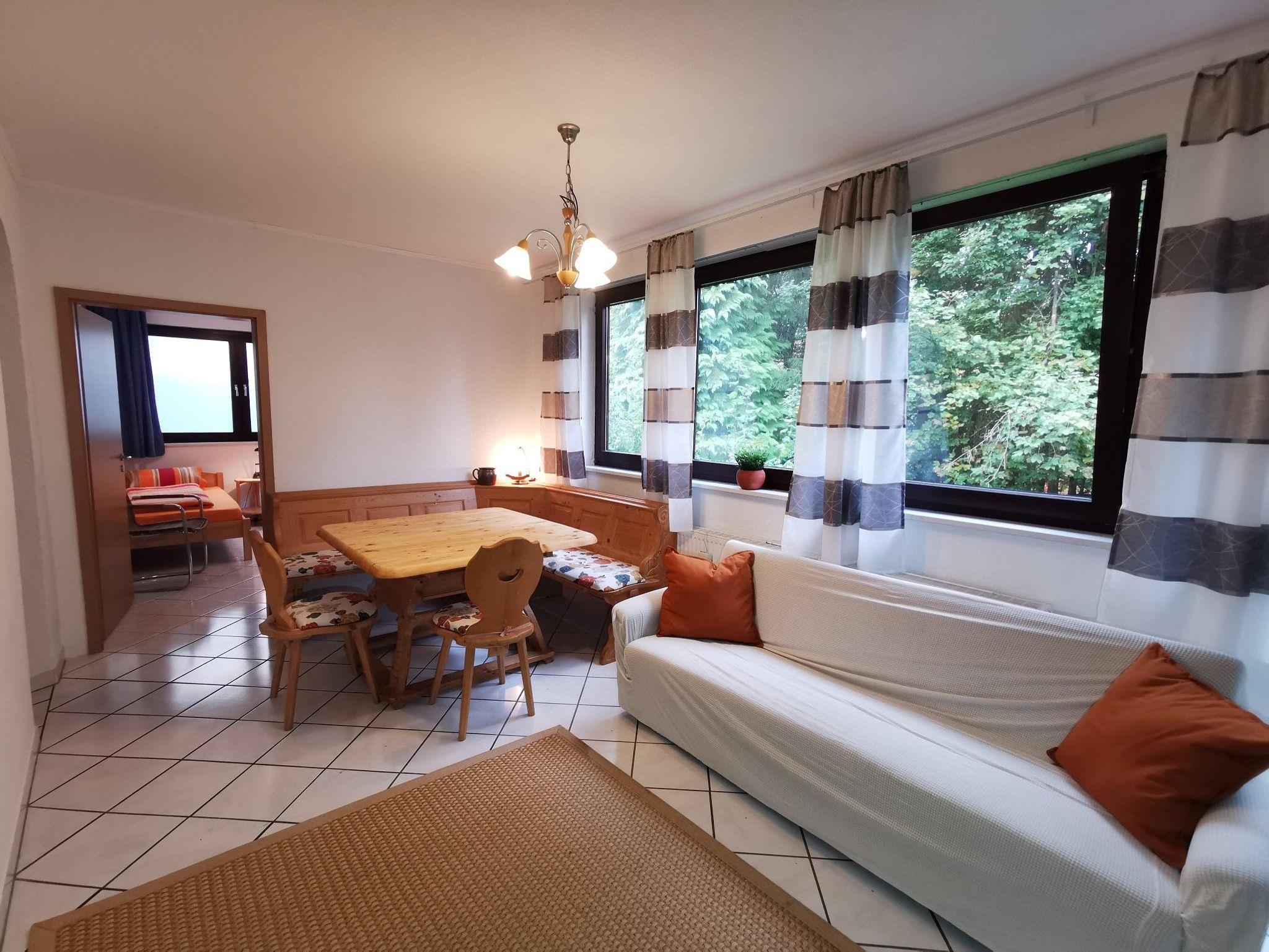 Die barrierefreie Erdgeschosswohnung bietet auf 110 Quadratmetern Platz für bis zu 7 Personen. Im Wohnzimmer stehen eine große gemütliche Couch sowie Satelliten-TV, Stereoanlage, WLAN und verschiedene Spiele bereit. In der Vitrine liegen verschiedene Prospekte, Wanderkarten und eine Info-Mappe für Sie bereit. Das wohnlich eingerichtete Esszimmer lädt zum Beisammensein ein. Bei Bedarf steht ein Kinder-Hochstuhl zur Verfügung. Schmökern Sie in der Leseecke bei einer vielfältigen Auswahl an Büchern. Die neuwertige Küche ist mit einem großen Cerankochfeld, Backofen, Spülmaschine, Mikrowelle, Kühlschrank (ohne Gefrierfach, aber mit 0°C-Biofresh-Gemüsefach), Filter-Kaffeemaschine, Senseo-Kaffeemaschine, Wasserkocher, Toaster und Eierkocher voll ausgestattet. Der Zubereitung kulinarischer Genüsse steht nichts im Wege. Die Ferienwohnung verfügt insgesamt über 3 Schlafzimmer. Dabei handelt es sich um ein Schlafzimmer mit einem Doppelbett mit Kinderbett (Zugang vom Wohnzimmer/Tür mit Milchglaseinsatz+zusätzl. Vorhang zum Abdunkeln + Bad), ein Schlafzimmer mit mit 2 Einzelbetten (Zugang vom Bad/Glastür zusätzl. mit Vorhang als Sichtschutz) sowie ein weiteres Schlafzimmer mit 2 Einzelbetten (Zugang vom Esszimmer). Die 7. Schlafmöglichkeit bietet die Schlafcouch im Esszimmer. Das großzügige, barrierefreie Duschbad trennt Doppelzimmer (Zugang vom Wohnzimmer/ Milchglastür+Bad), das eine Zweibettzimmer (Zugang vom Bad/Glastür) und Küche. Zudem finden Sie im Badezimmer Haartrockner (Föhn), Hand- und Duschtücher, Handseife, Gästetücher etc. Entspannen Sie nach einem erlebnisreichen Tag in der Infrarotsauna (gegen zusätzliche Nutzungs-Gebühr).