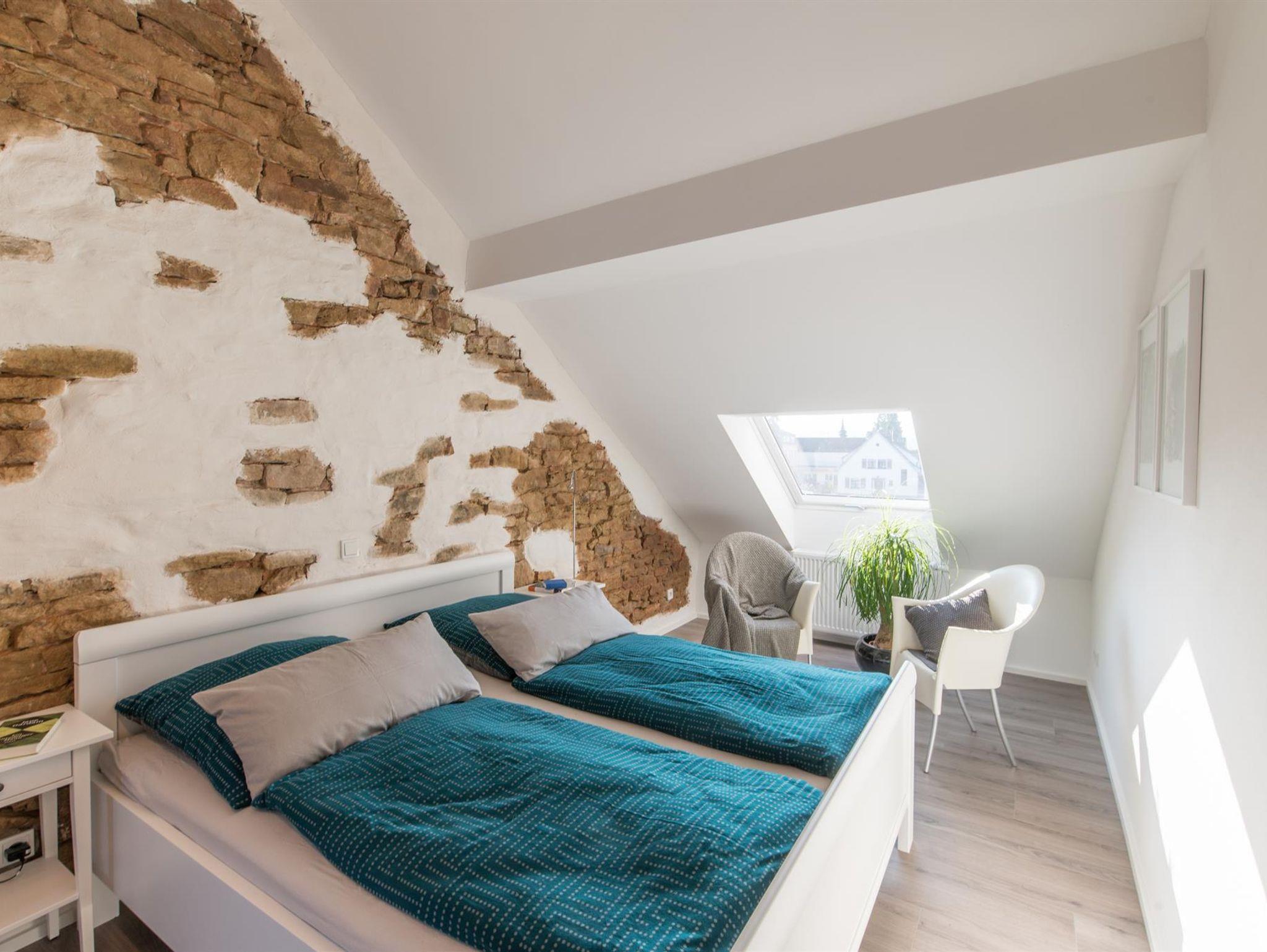Unser Bücherloft ist eine neurenovierte und neumöbilierte schöne helle und freundliche Dachwohnung. Es ist die gesamte Fläche unseres Hauses mit offener Dachspitze. Alle Fenster der Wohnung sind verdunkelbar. Ein Schlafzimmer mit Doppelbett, Sitzecke und Schrank, Platz für Babyreisebett. Das große Wohnzimmer ist mit zwei Schlafcouchen (1,40 x 2,00 Meter) ausgestattet und WLAN, LAN, TV (55 Zoll Bildschirm), Bluetooth Audiosystem. Einbauküche mit Essecke, Leseecke mit Schreibtisch, Badezimmer mit Dusche/WC. Auch ein kleiner Abstellraum ist vorhanden.