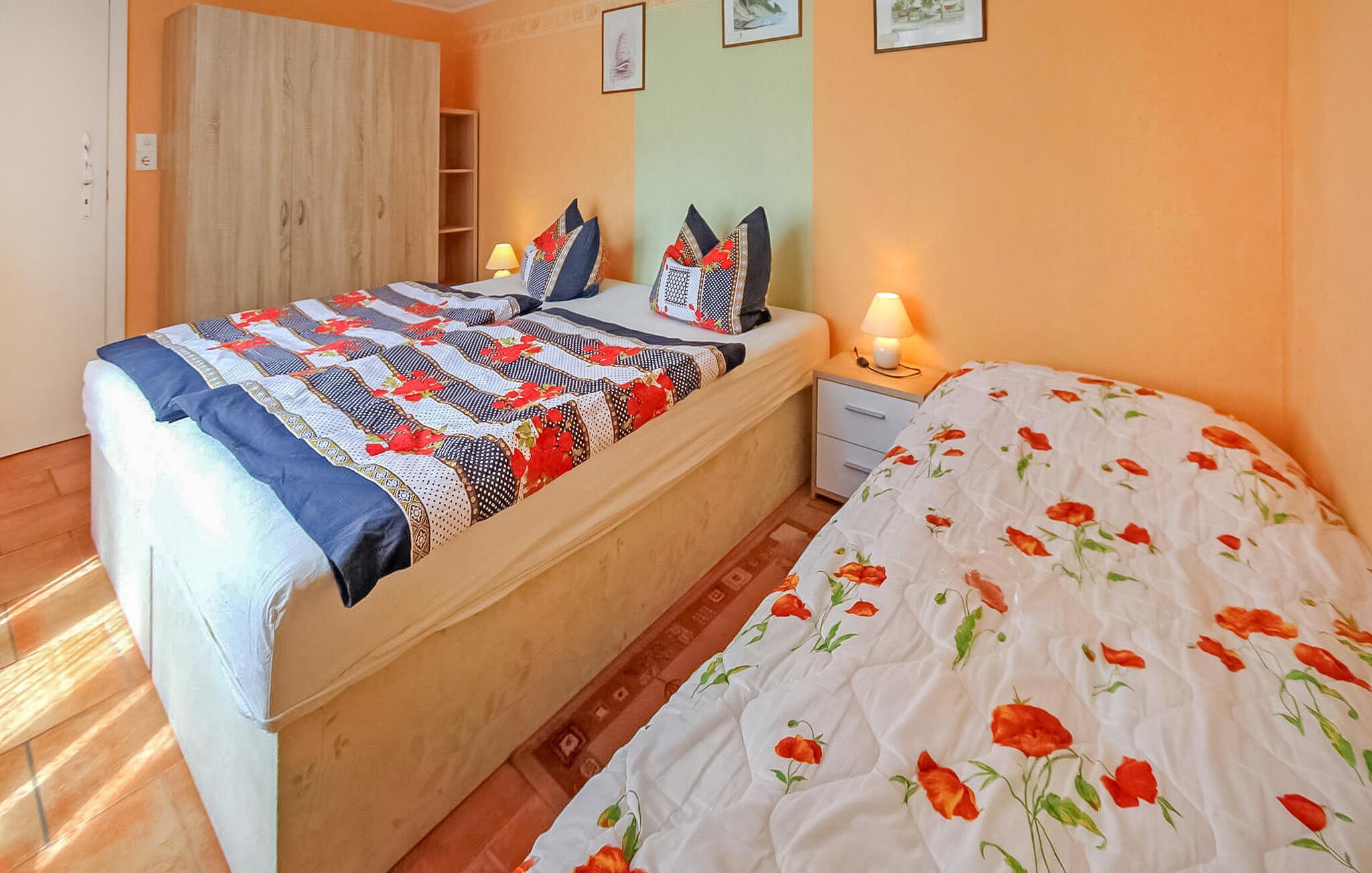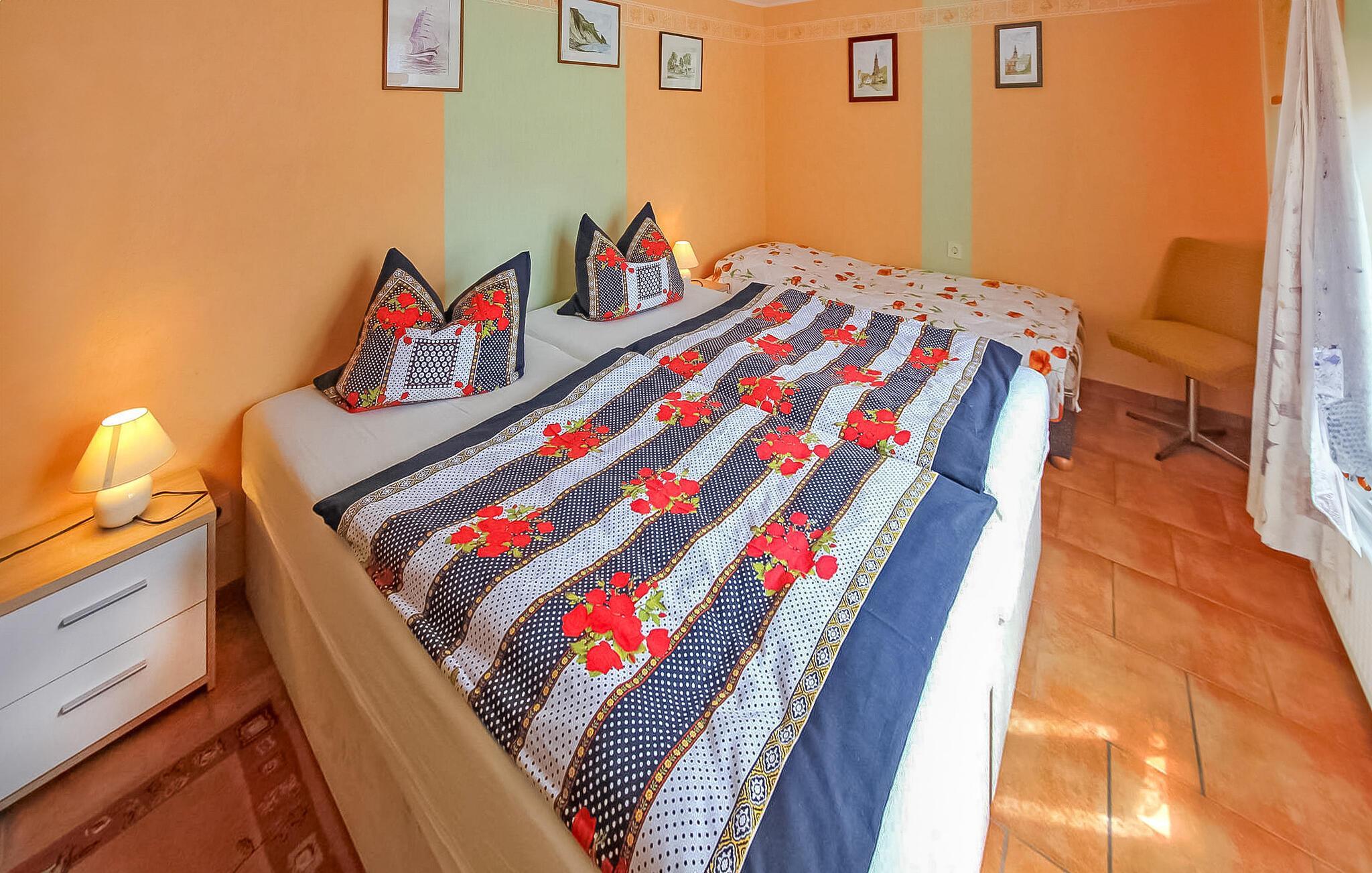 Schlafzimmer (nr. 1) - 1 Schlafmöglichkeit. (Einzelbett(en)). 2 Schlafmöglichkeiten. (Doppelbett(en)).