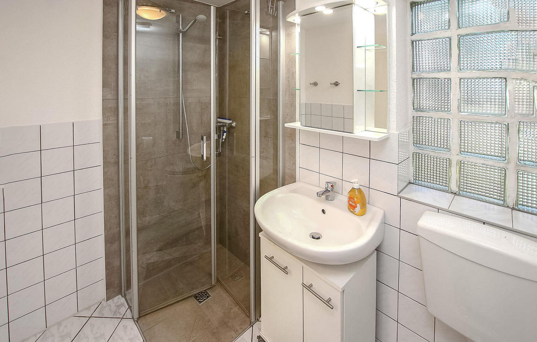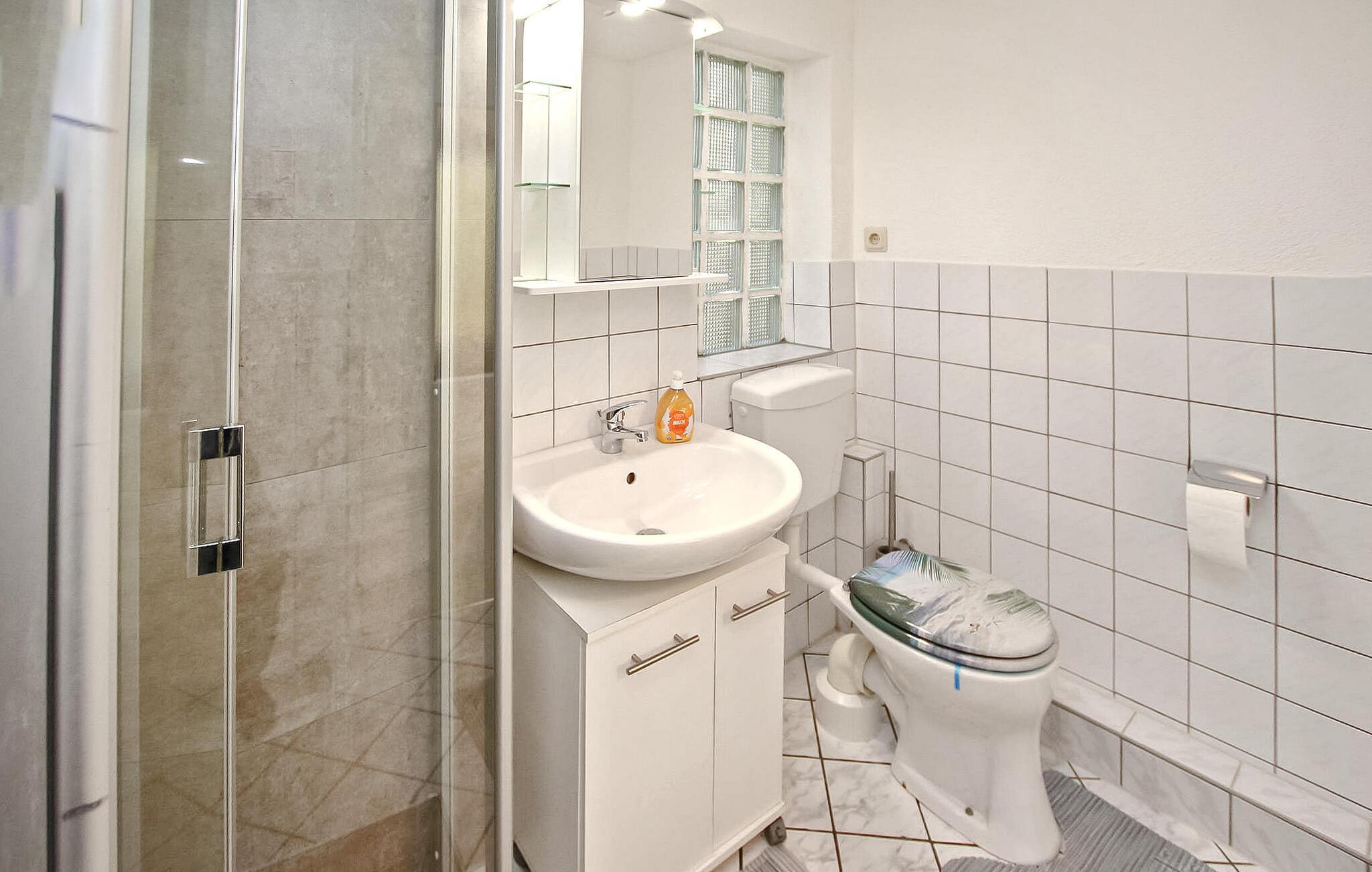 Badezimmer (nr. 1) - WC. Warmes und kaltes Wasser. Dusche