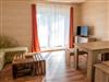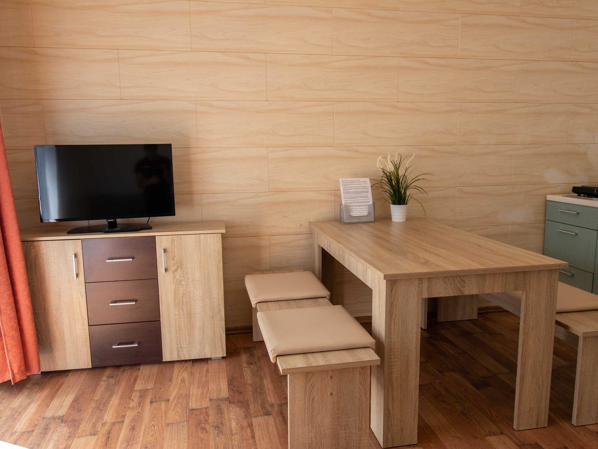 Das Wohnzimmer ist mit einer Schlafcouch (Aufbettung für 2 Personen), TV, einem Esstisch und einer Miniküche mit Kühlschrank und Mikrowelle eingerichtet. Im ersten Schlafzimmer befindet sich ein gemütliches Doppelbett mit Kleiderschrank. Das zweite Schlafzimmer beherbergt zwei Einzelbetten und einen Kleiderschrank. Das freundliche Tageslichtbad hat eine Dusche und ein WC. Zum Entspannen und Sonne tanken lädt die Terrasse ein. Sie ist vom Wohnzimmer aus begehbar.