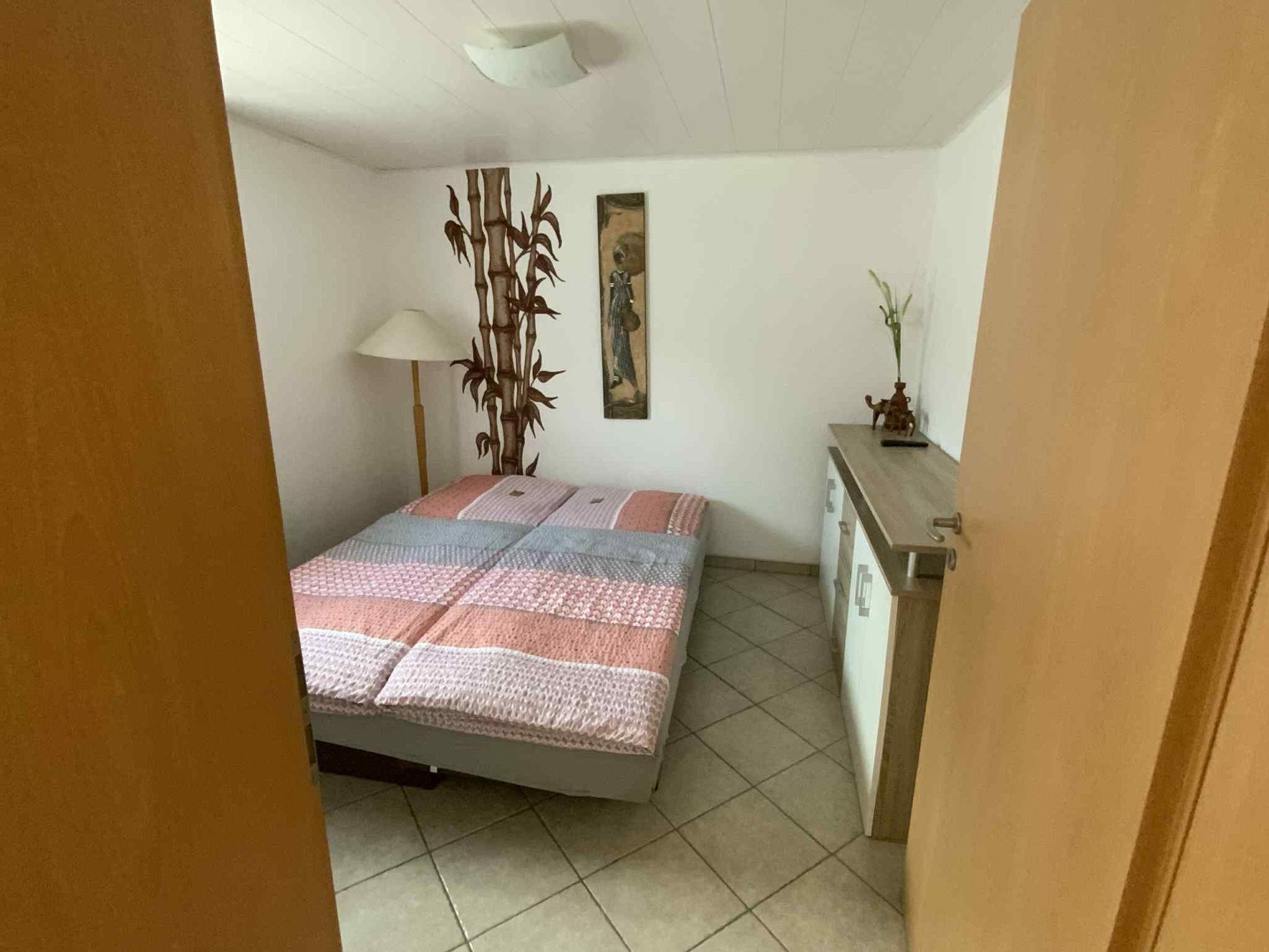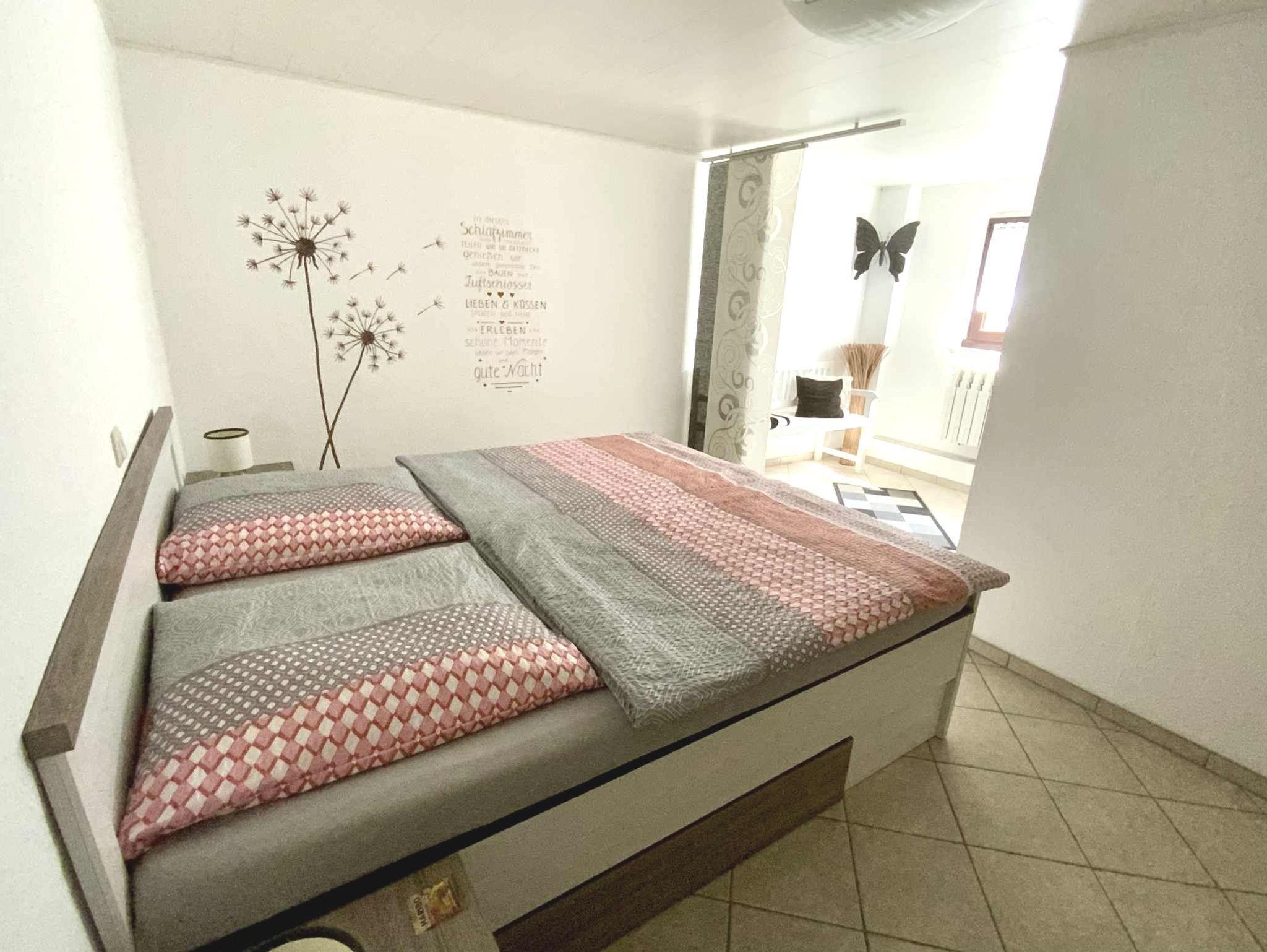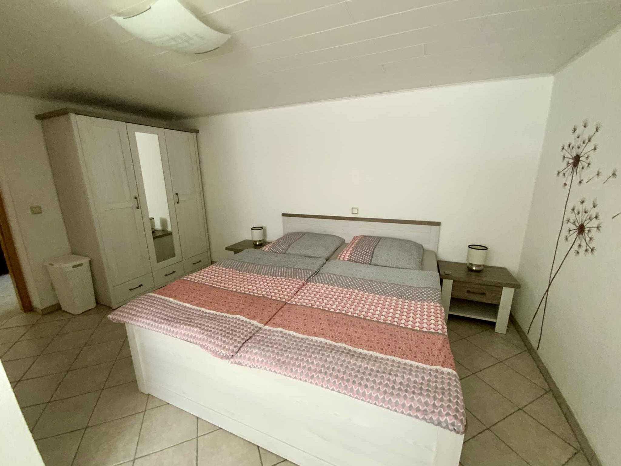 Zusätzlich gibt es 2 Schlafzimmer, 1 Zimmer ist mit Doppelbett ( 1,80 x 2,00 m ) und das andere Zimmer mit einem Bett (1,60 x 2,00 m) und einem LED- Fernseher ausgestattet. Im Bad gibt es WC und Dusche. Vor der Wohnung haben Sie eine offene Terrasse für sonnige Stunden zur Verfügung. Ein PKW- Stellplatz ist auf dem Grundstück ebenfalls vorhanden.