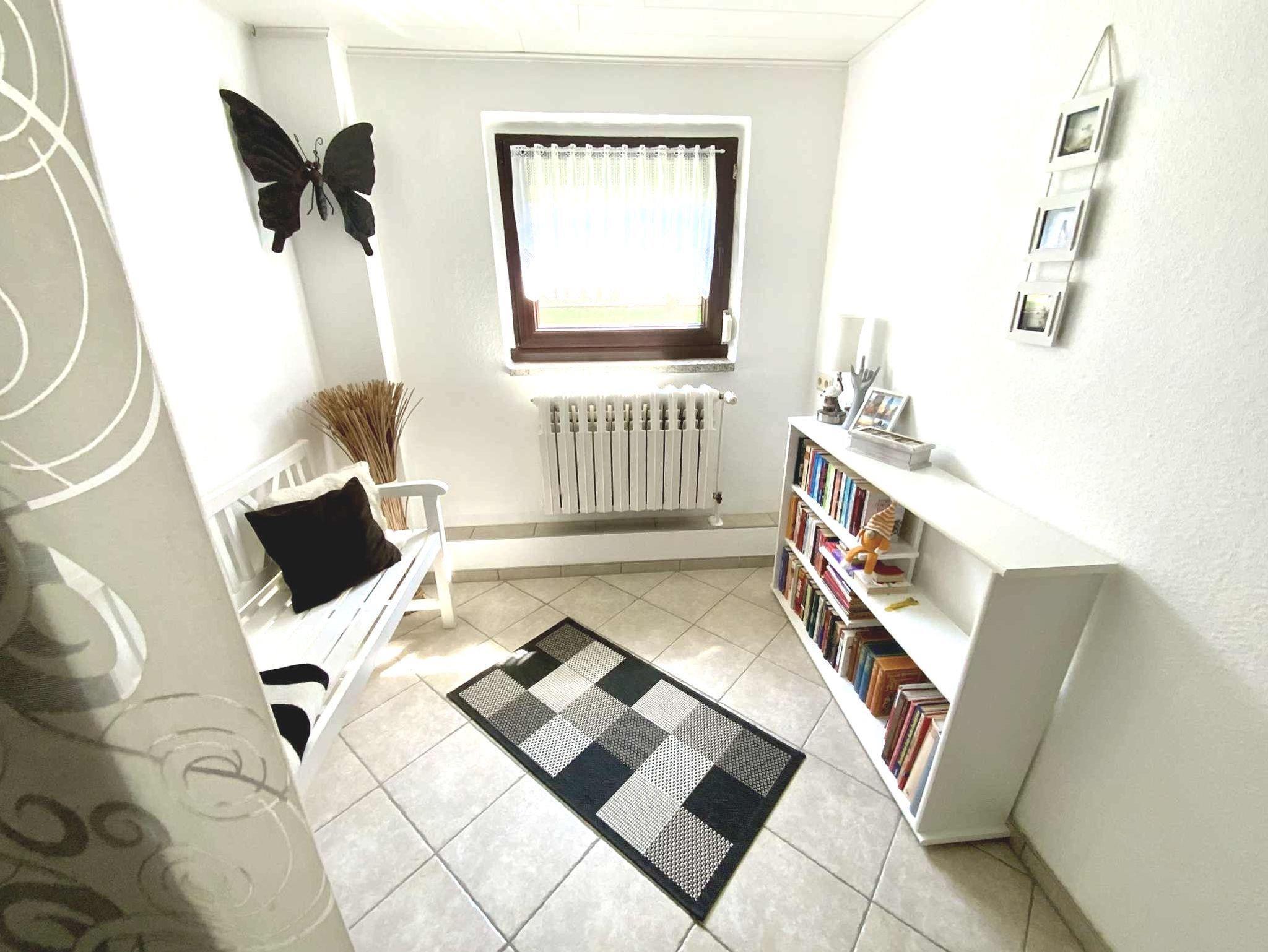 Schicke liebevoll im Detail eingerichtete Ferienwohnung. Die Belegung ist mit 4 Erwachsenen oder 2 Erwachsenen und 2 Kindern möglich. Die Küchenzeile ist in den Wohnraum integriert und mit einer separaten Sitzecke ausgestattet. Der offene Wohnbereich verfügt über einen großen Flachbild- TV und Radio.