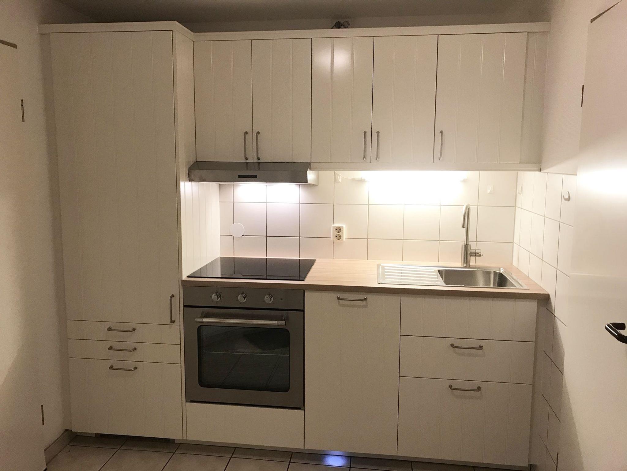 Küchenzeile Herd mit Ceran-Kochfeld und Backofen, Kühlschrank & Gefrierfach, Kaffeemaschine, Toaster, Wasserkocher, Geschirrspüler