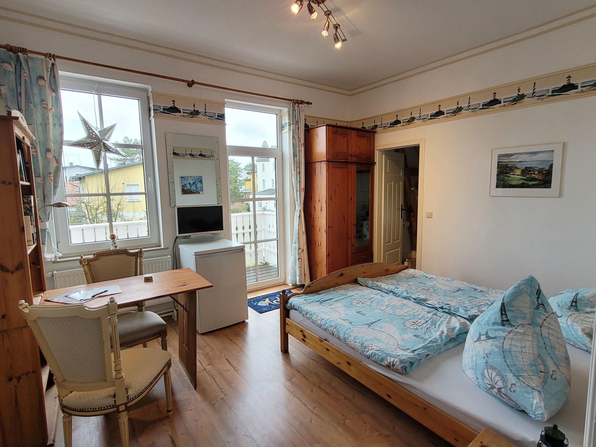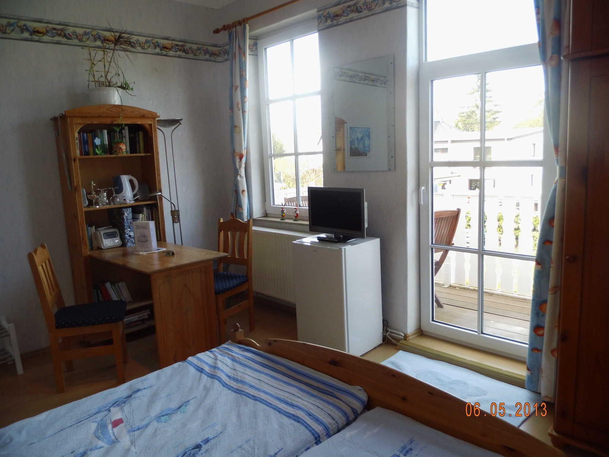 Die Pension Villa Erika in Lubmin bietet ein allergikerfreundliches Doppelzimmer mit Balkon nur 120 m vom Strand entfernt.