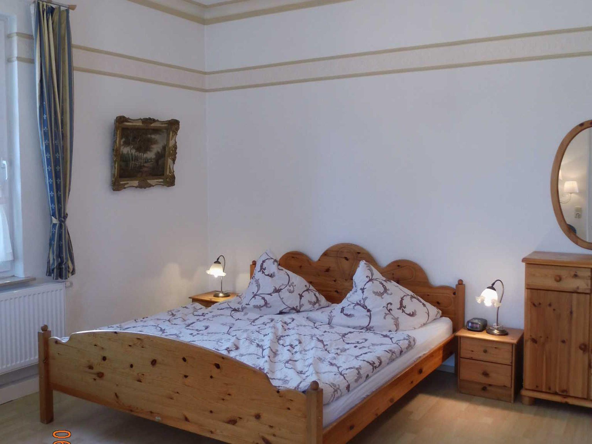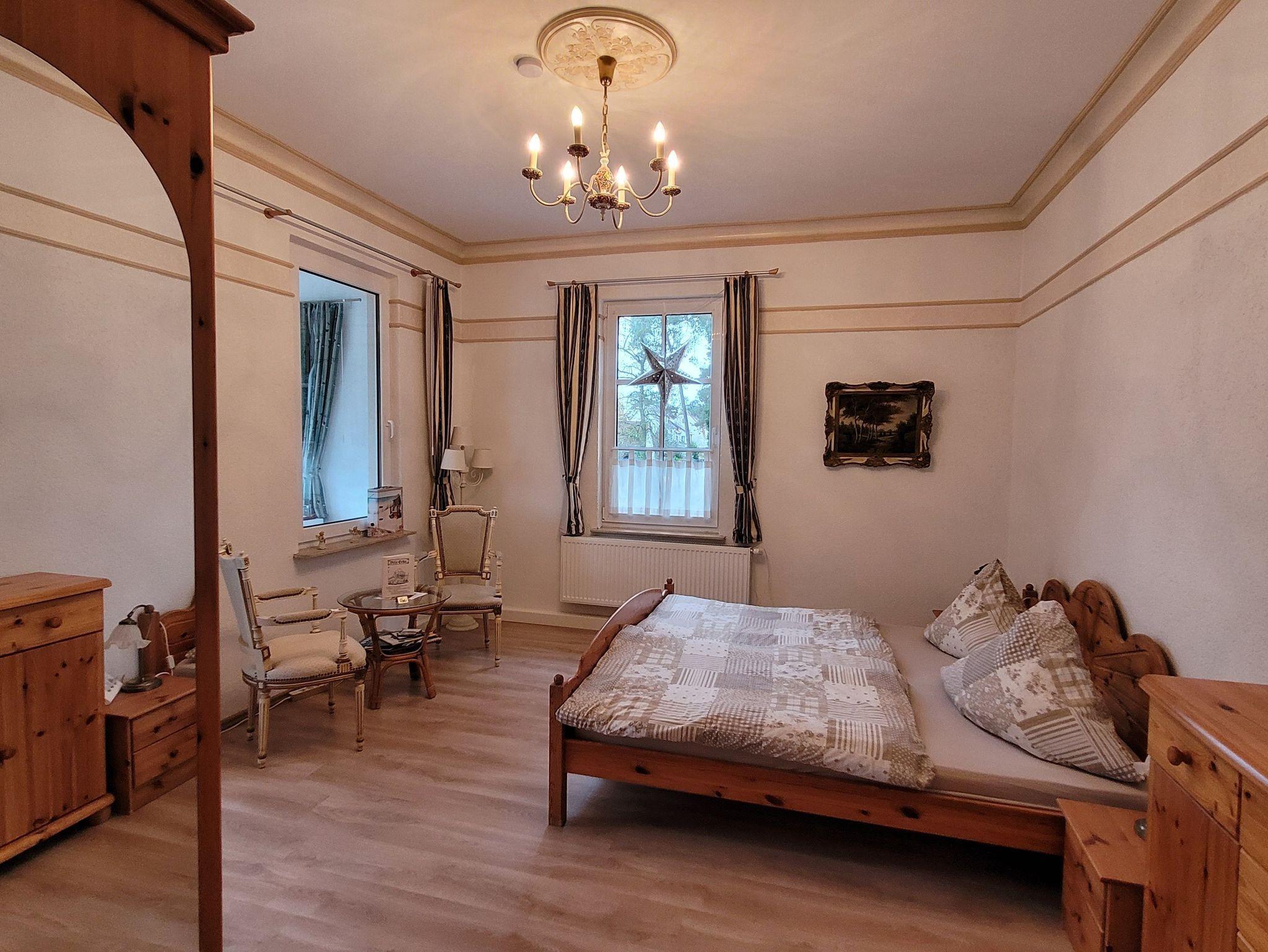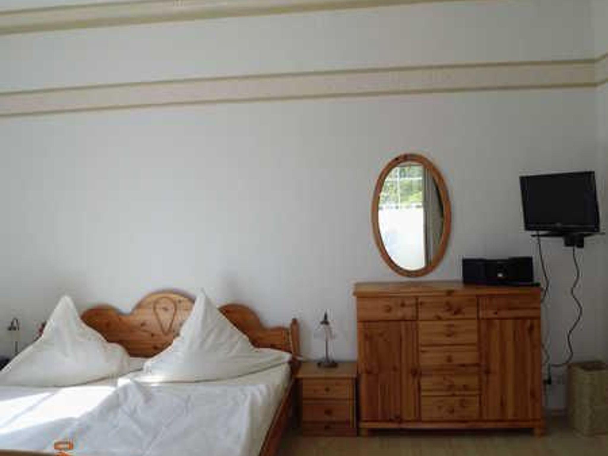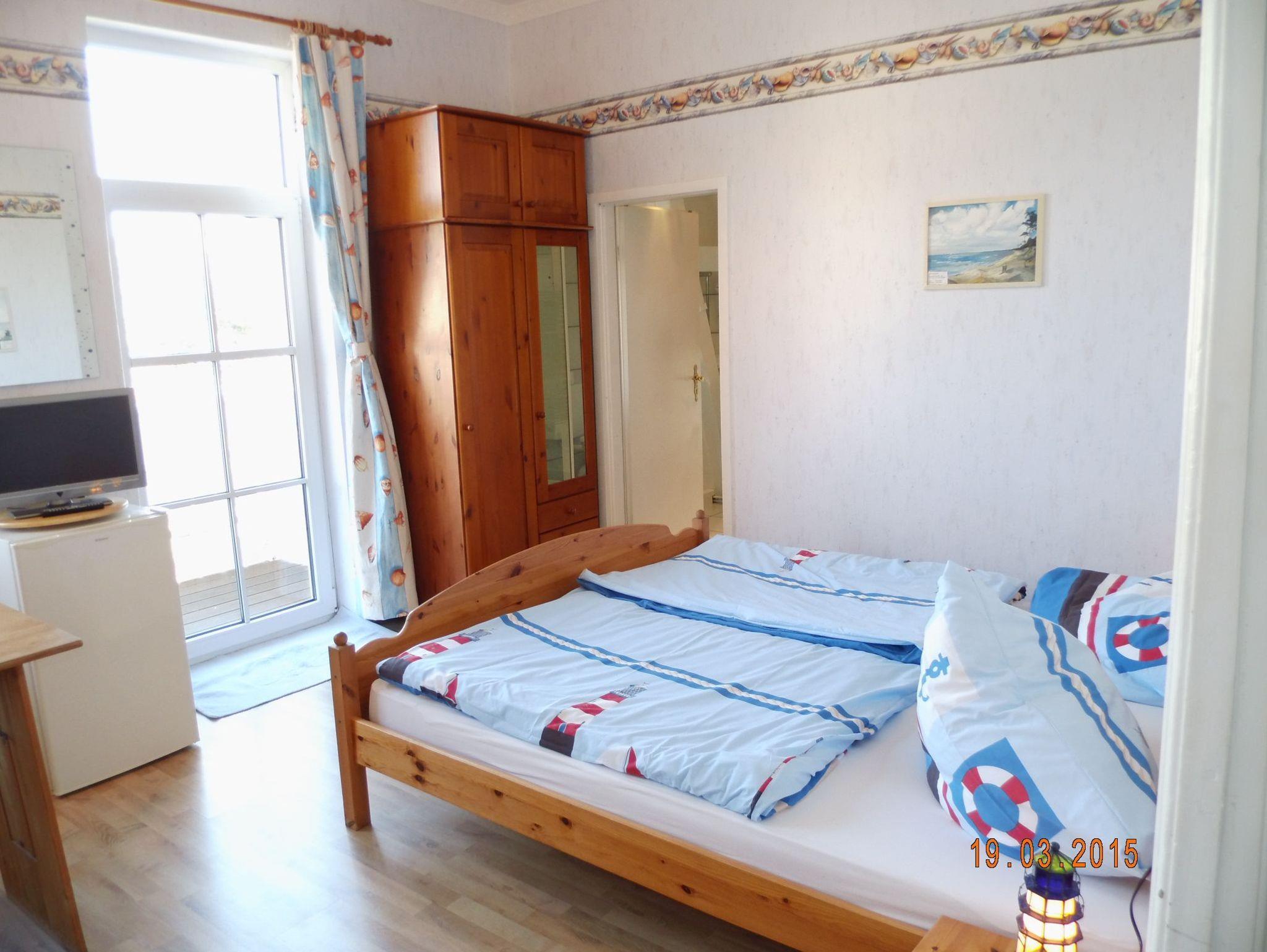 Das mit Laminat ausgelegte Doppel-/Wintergartenzimmer (31qm)ist zweckmäßig eingerichtet mit einem Doppelbett (bezogen mit Spezialbettwäsche), Kleiderschrank, Kühlschrank, Bücherregal sowie TV (mit DVD-Spieler) und Radiowecker (mit CD-Spieler).