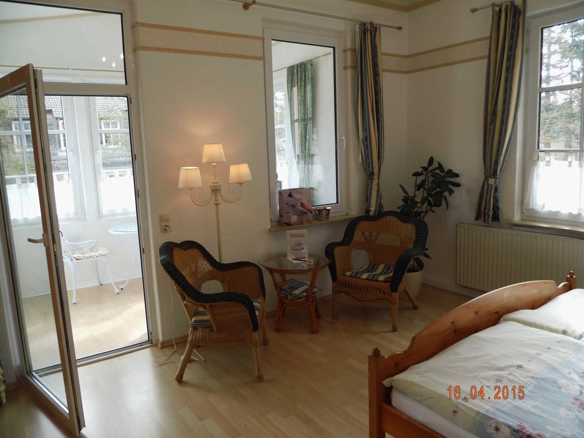 Komfortables Doppelzimmer mit Wintergarten. Ausgestattet mit Dusche/WC, Kabel-TV, Radio, Bettwäsche und Handtücher. Es wird alle 3 Tage gereinigt. Haustiere erlaubt. Gerne kann dieses Zimmer auch als Einzelzimmer genutzt werden! Waschmaschine, Trockner neben dem Frühstücksraum. Die Terrasse & der Spielplatz neben der Villa stehen all unseren Gästen zur freien Nutzung. Ein hauseigener Parkplatz befindet sich hinter dem Haus.