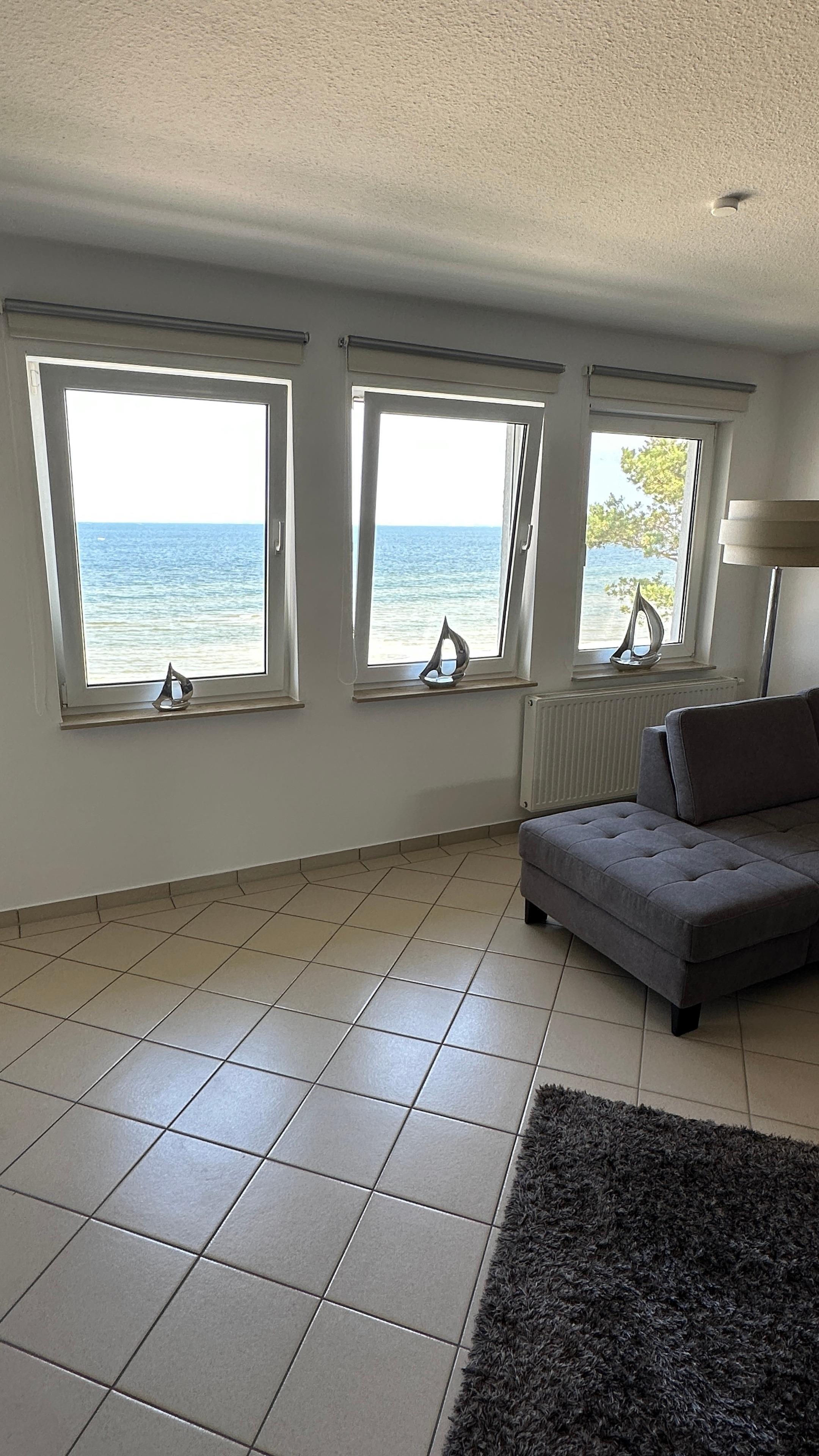 Genießen Sie im Apartment OceanView in Lubmin einen traumhaften Meerblick direkt vom Balkon und Wohnzimmer.