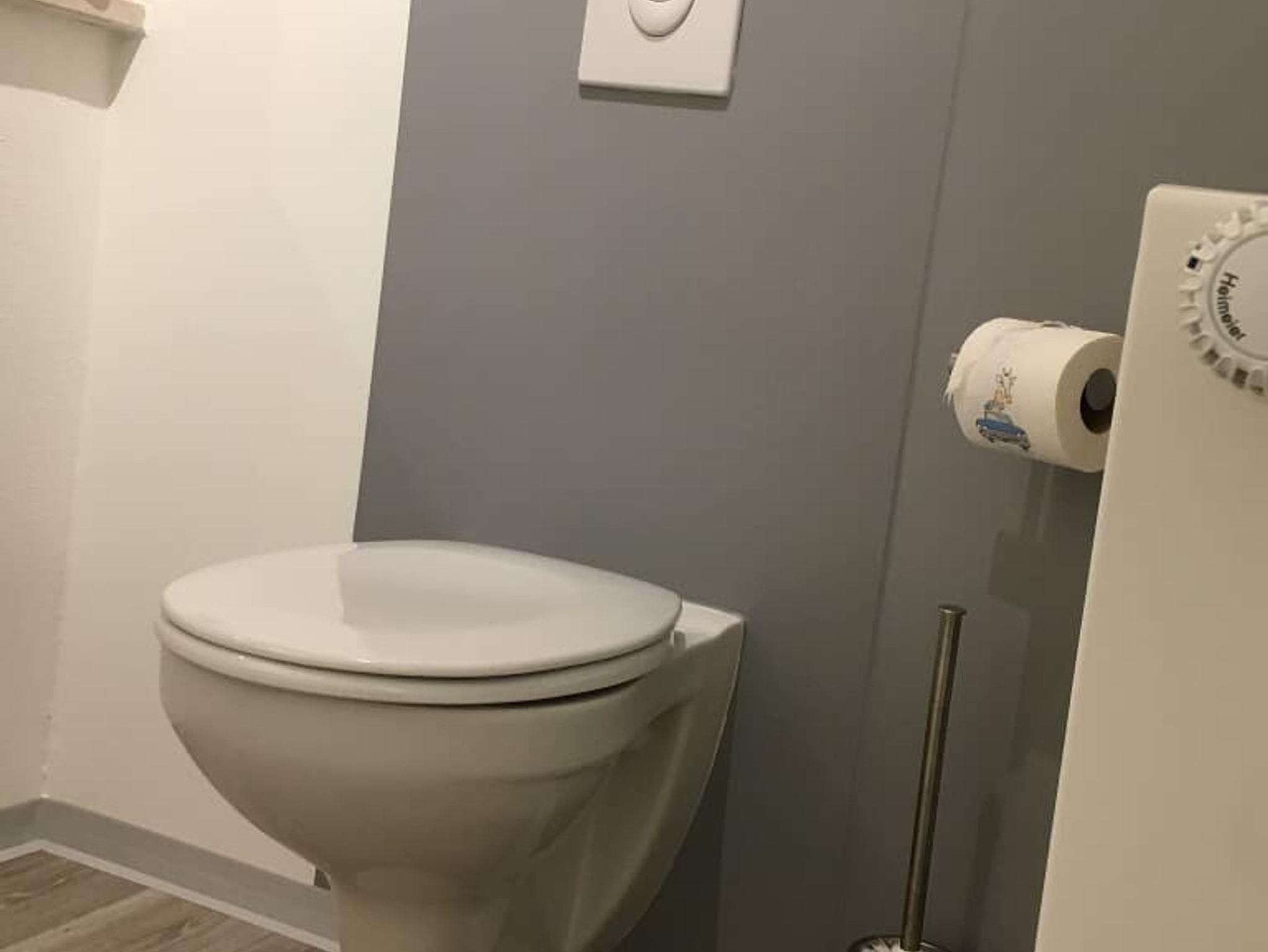 Das Zimmer teilt sich ein Gemeinschaftsbad am Flur je nach Buchung nutzen max. 3 Personen zusammen das Bad.