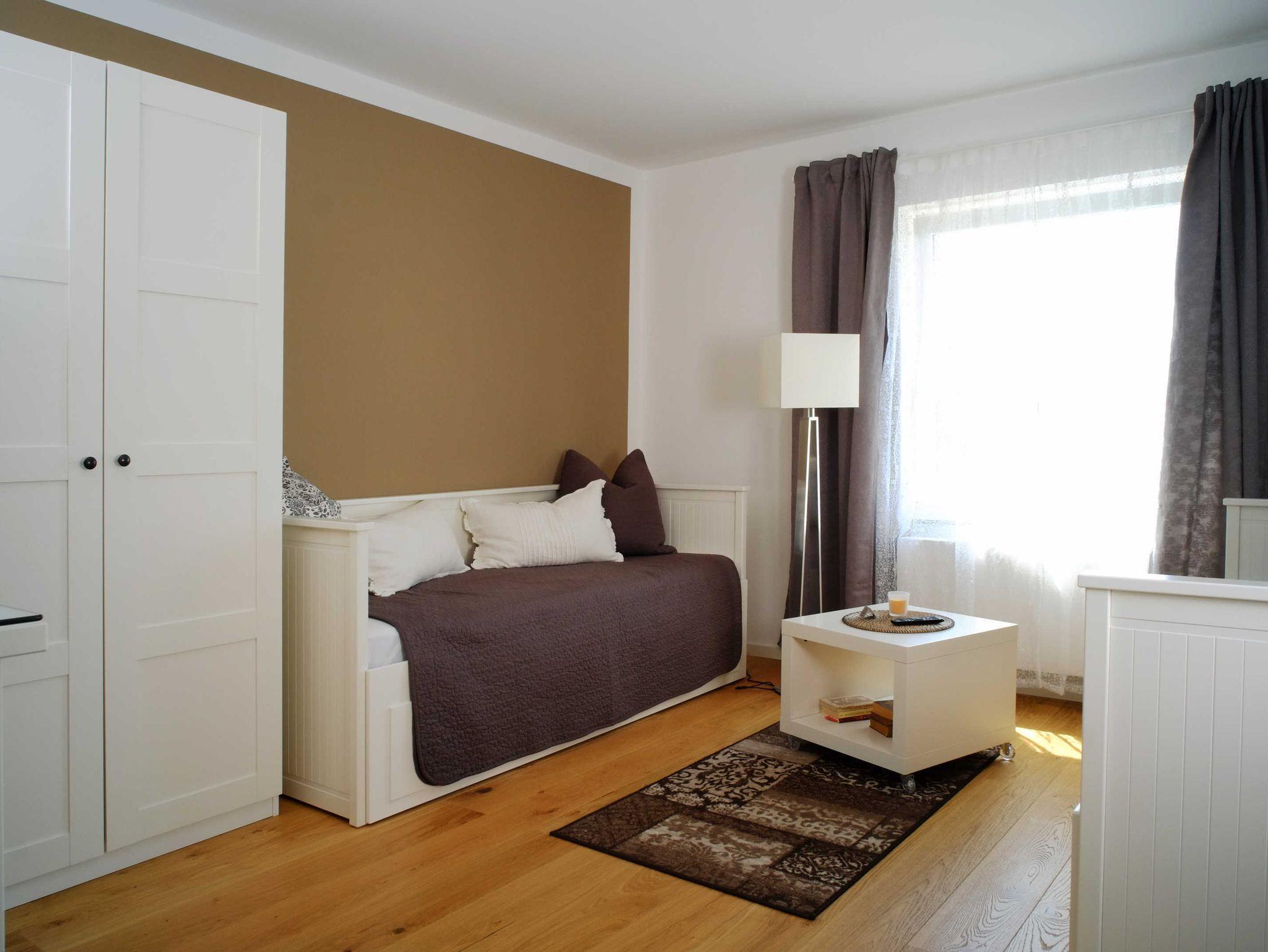 • Schlafzimmer: ein weiteres Einzelbett, welches ebenfalls zu einem Doppelbett ausziehbar ist