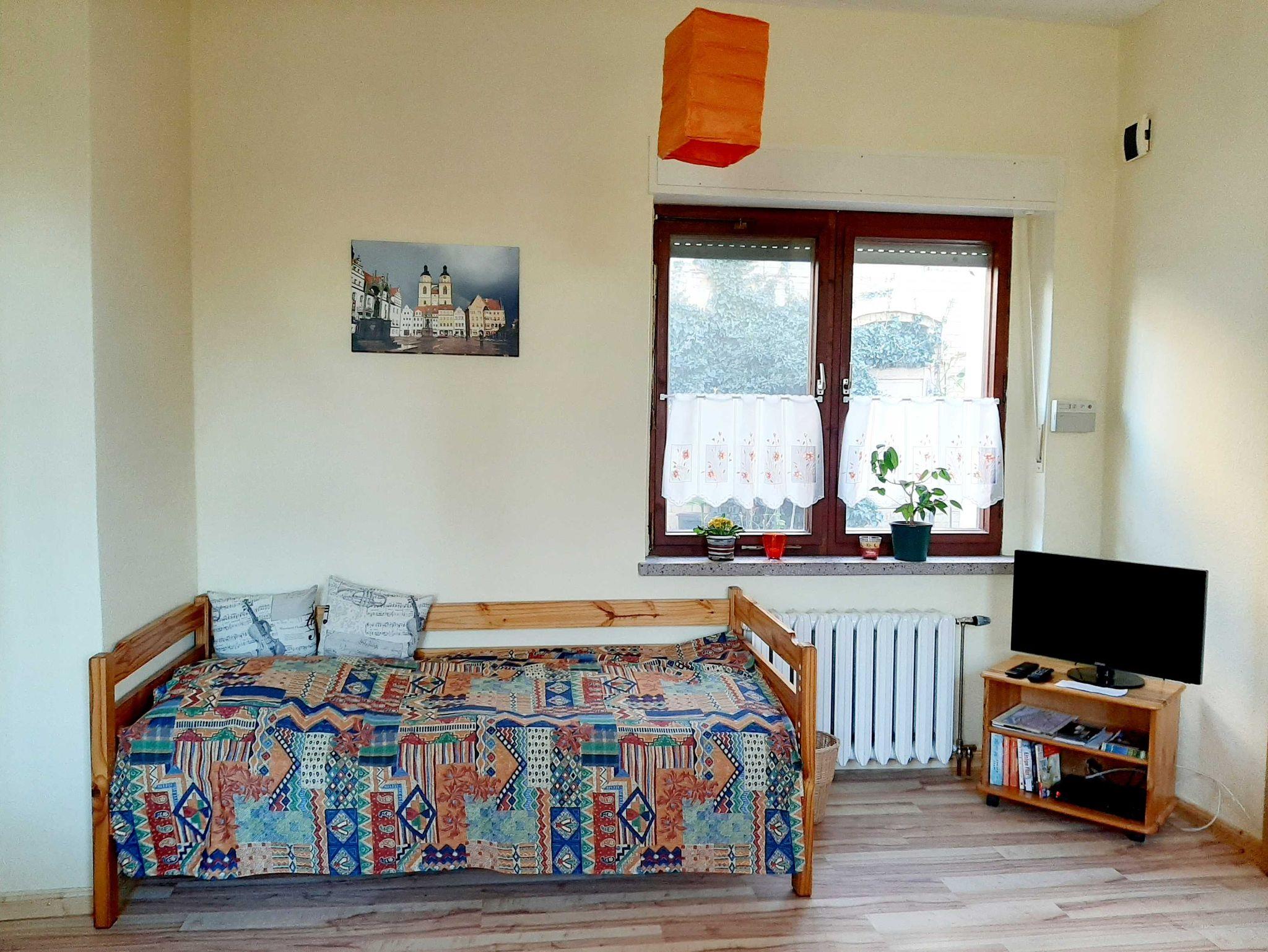 • kombinierter Wohn-/Schlafraum mit einem Doppelbett (1,80 x 2,00 m) und einem Einzelbett