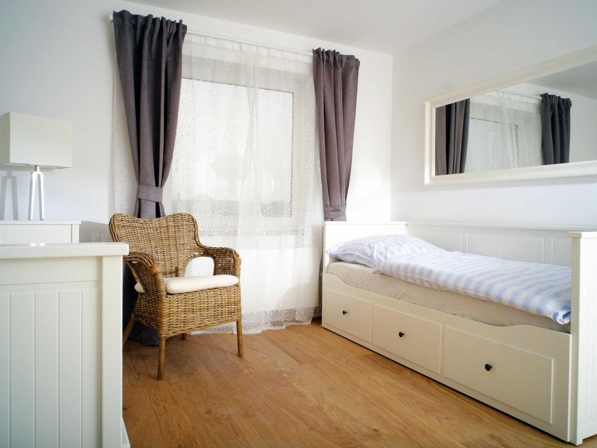 • Schlafzimmer: ein weiteres Einzelbett, welches ebenfalls zu einem Doppelbett ausziehbar ist