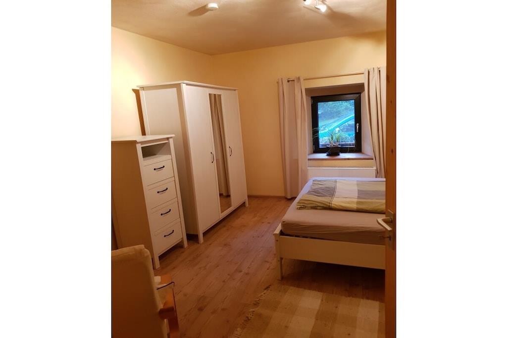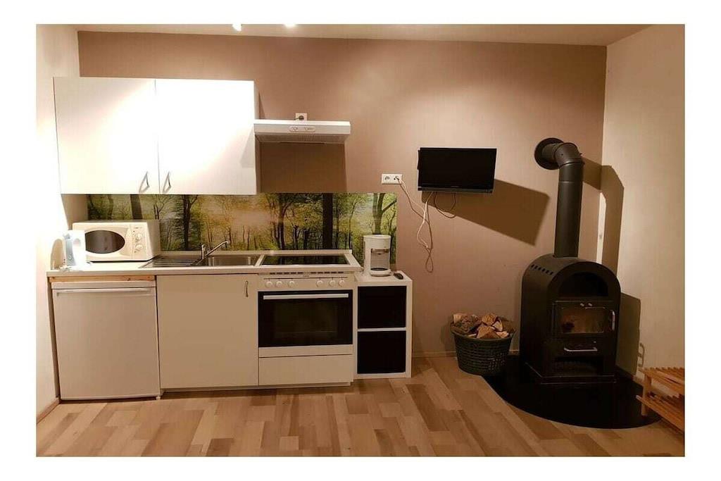 Neu erstelltes Appartement von 28 m² in idyllisch gelegener alter Mühle am Üßbach. Die Wohnung ist mit einer kompletten Küche ausgestattet, damit die Selbstversorgung möglich ist. Schlafzimmer und Bad mit Dusche sind vorhanden. In der Wohnküche befindet sich neben einem Essbereich auch eine Schlafcouch. Die Wohnung ist ideal für 2 Personen, kann aber durch die Schlafcouch ohne Probleme auch mit 4 Personen genutzt werden. Die Einrichtung ist aufgrund des Neubaus modern! Die dazugehörige Dachterrasse kann genutzt werden, Gartenmöbel sind vorhanden! Wir liegen direkt im Naturschutzgebiet am Rundwanderweg , von dort kann man viele Maare und umliegende Orte zu Fuß, per Fahrrad oder Pferd erreichen. Der Handyempfang ist nicht von jedem Anbieter vorhanden! Achtung: Nicht mit tiefergelegten Fahrzeugen erreichbar!!!