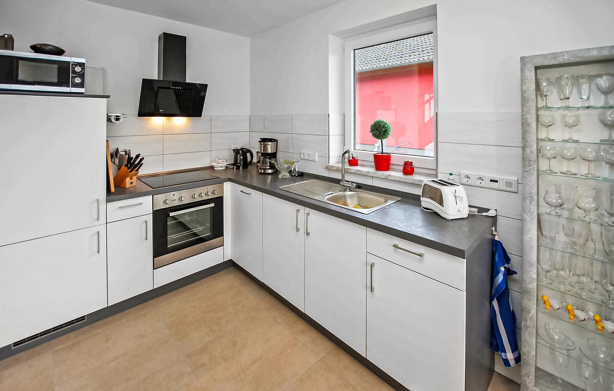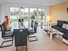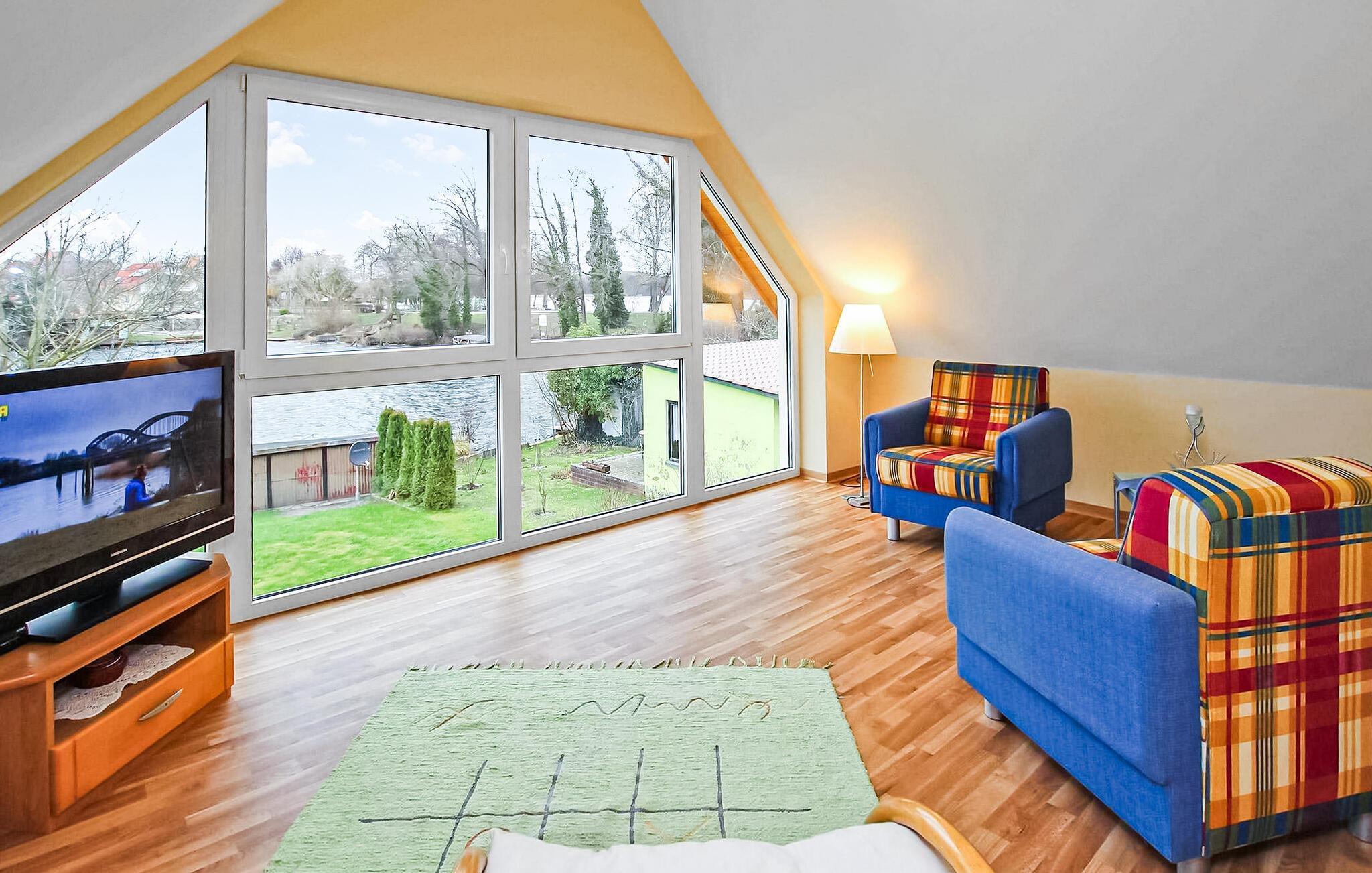Das ca. 159 qm große, mit (im EG Fußboden-)Heizung sowie Insektenschutz und elektrischen Rolläden an den Fenstern ausgestattete Nichtraucher-Haus erstreckt sich über zwei Etagen. Im Erdgeschoss befindet sich ein großer, offen gestalteter Wohnraum (Seeblick, Terrassenzugang, Schlafcouch, Radio, Esstisch) mit kompletter Küche (E-Herd mit Backofen, Kühlschrank mit Gefriermöglichkeit, Mikrowelle, Geschirrspüler, div. Küchenkleingeräte), ein Schlafraum (Doppel-Boxspringbett, Flachbild-TV, großer Kleiderschrank) und ein geräumiges Bad (ebenerdige Dusche, WC, Fön, Waschmaschine).