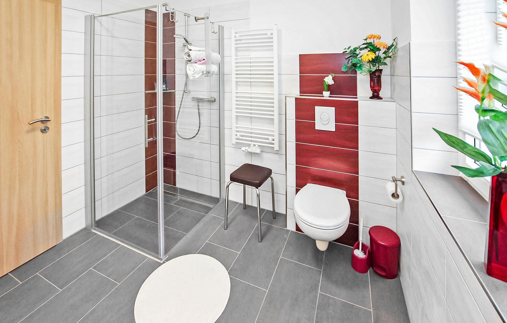 Badezimmer (nr. 1) - WC. Warmes und kaltes Wasser. Dusche