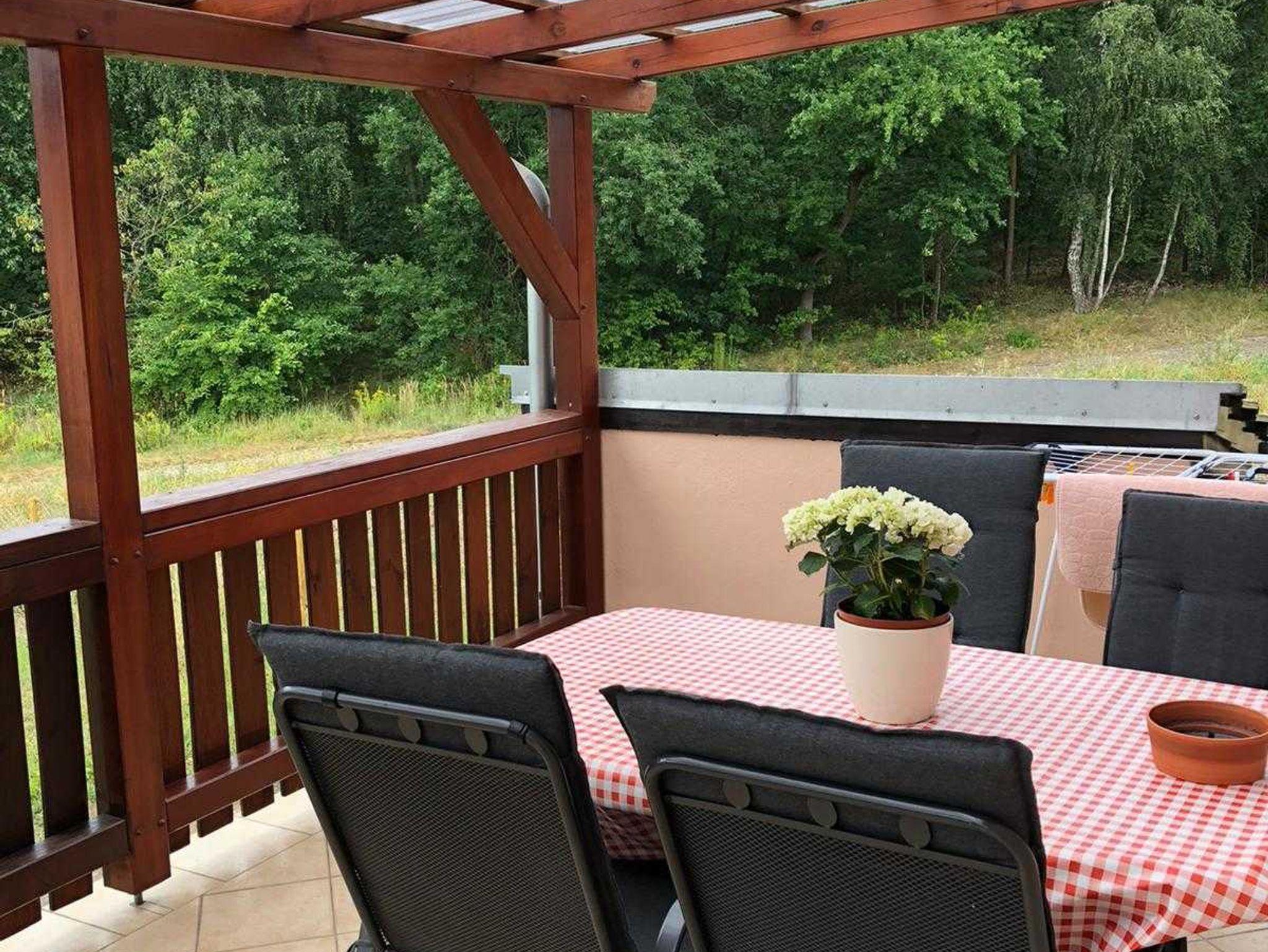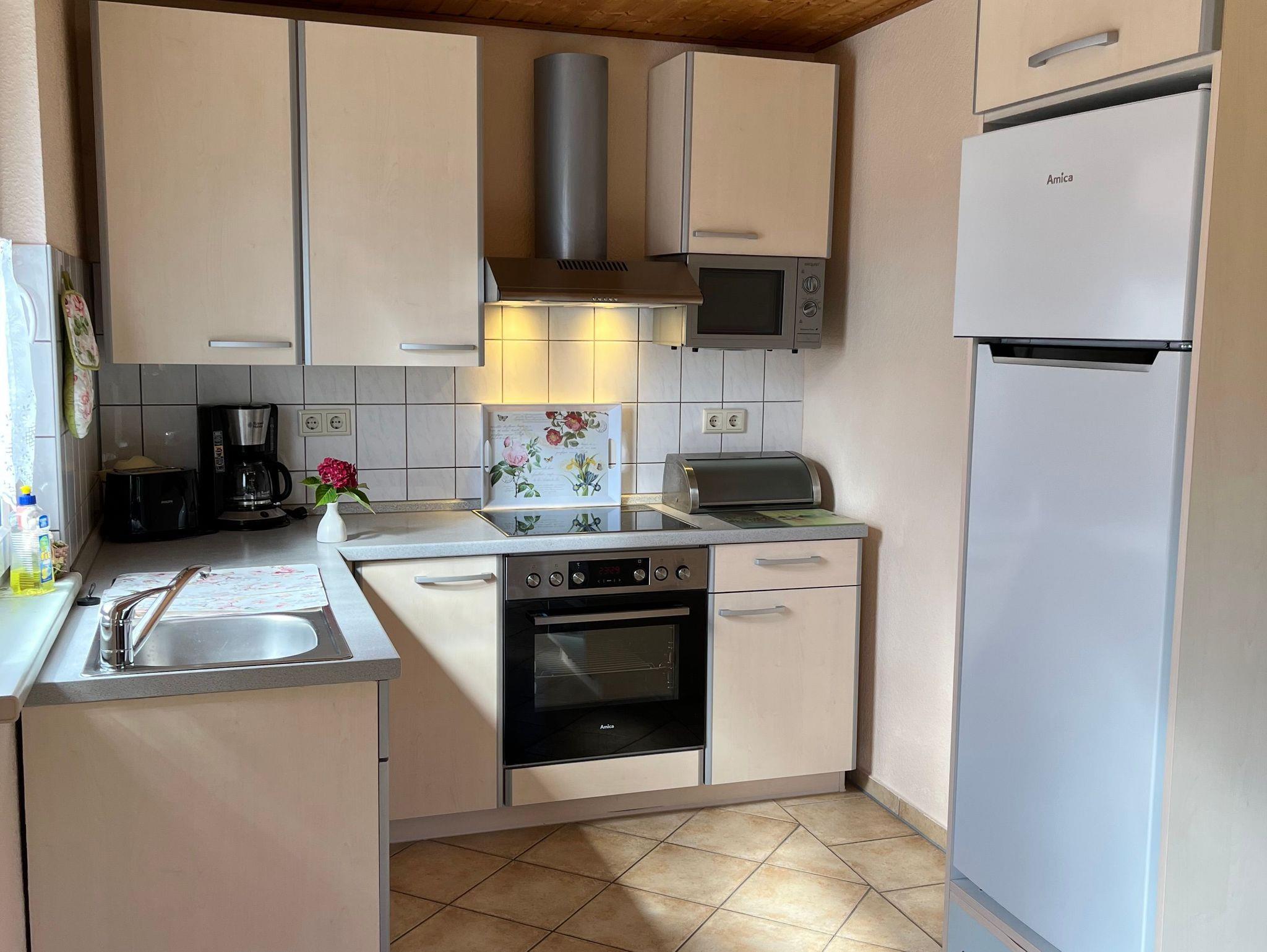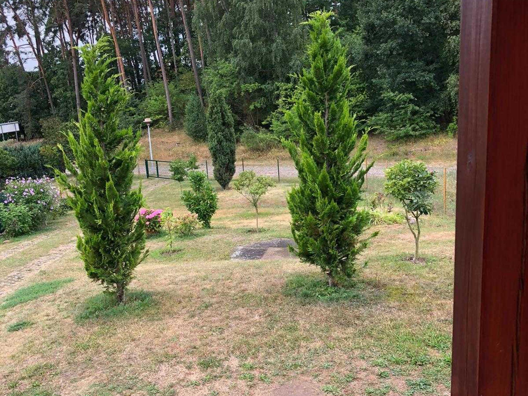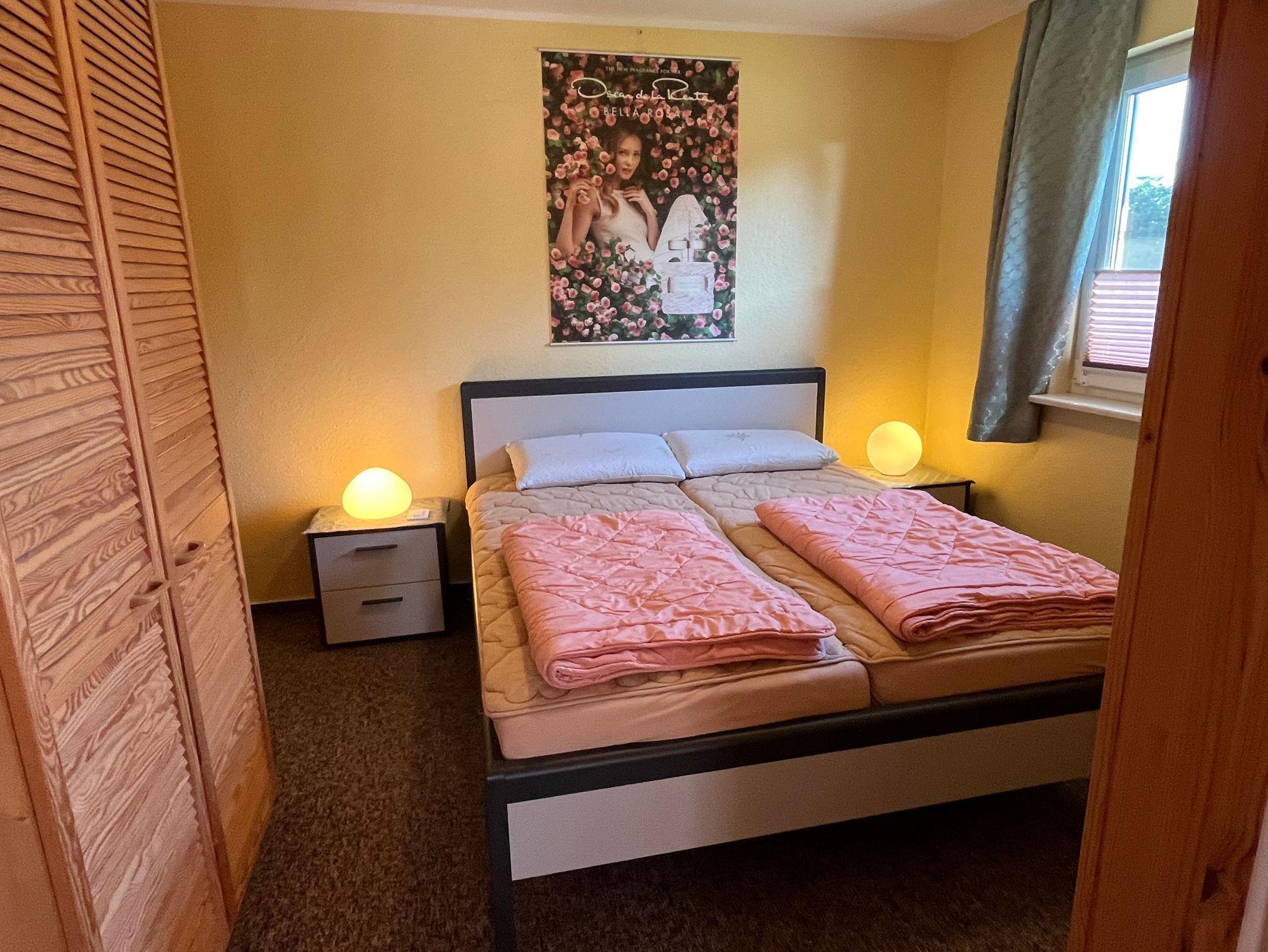 Das Ferienhaus in der Uckermark in Lychen ist 60 qm groß. Es ist die vordere Seite einer Feriendoppelhaushälfte. Sie betreten es gleich im Wohn- und Esszimmer mit offener Küche. Im Eingangsbereich ist eine Flurgarderobe. In der Küche finden Sie einen Backofen mit Cerankochfeld, einen Geschirrspüer, eine Mikrowelle, eine Kühl-Gefrierkombination, eine Kaffeemaschine, einen Toaster und einen Wasserkocher. Daneben steht der Esstisch mit Stühlen. Der Wohnbereich ist mit einer Couch, einem kleinen Tisch, einem Sessel, einem Kamin und einem Sideboard mit dem Fernseher und einer Stereoanlage ausgestattet. Das Bad mit Dusche und WC erreichen Sie jeweils durch die beiden Schlafzimmer. In einem Schlafzimmer gibt es ein 1,60 m breites Doppelbett und Einbaukleiderschränke, die nur 20 cm tief sind. Das zweite Schlafzimmer ist mit einem Einzelbett und einem Kleiderschrank eingerichtet. Vor der Tür ist eine überdachte Terrasse mit Gartenmöbeln und Grill. Sie können den ganzen Garten, zusammen mit den Gästen der anderen Doppelhaushälfte, zum spielen und entspannen nutzen. Ihren Pkw können Sie neben dem Haus auf dem Grundstück abstellen.