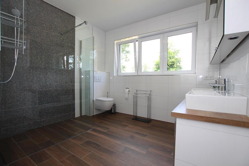 Das Erdgeschoss verfügt über ein großes Badezimmer mit Dusche, Doppelwaschbecken, WC und einer einladenden Sauna, während im Obergeschoss ein weiteres Badezimmer mit Badewanne, Waschbecken und WC zur Verfügung steht. Beide Bäder sind mit einem Föhn ausgestattet.