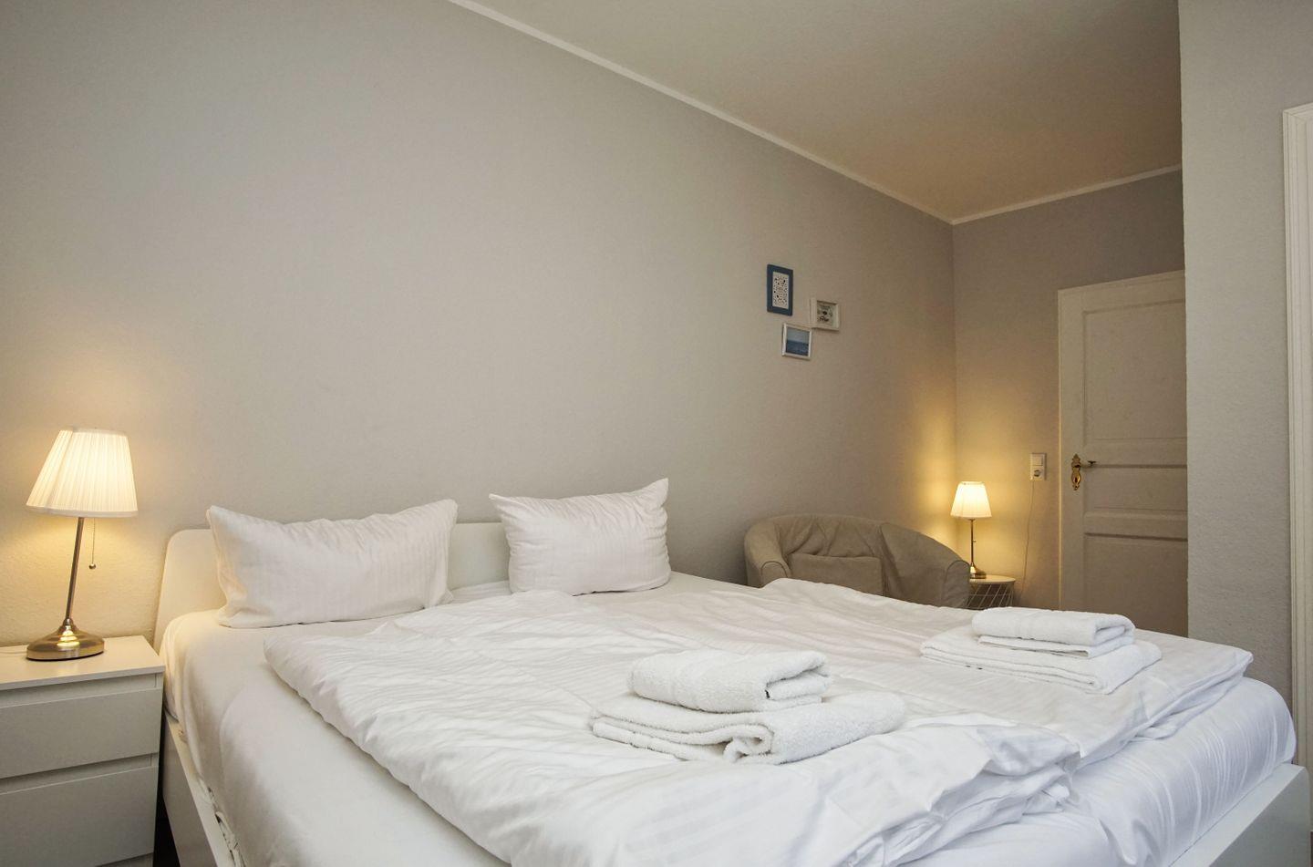 SCHLAFEN// ein separates Schlafzimmer mit Doppelbett und Flachbild-TV, Schlafcouch im Wohnzimmer ++