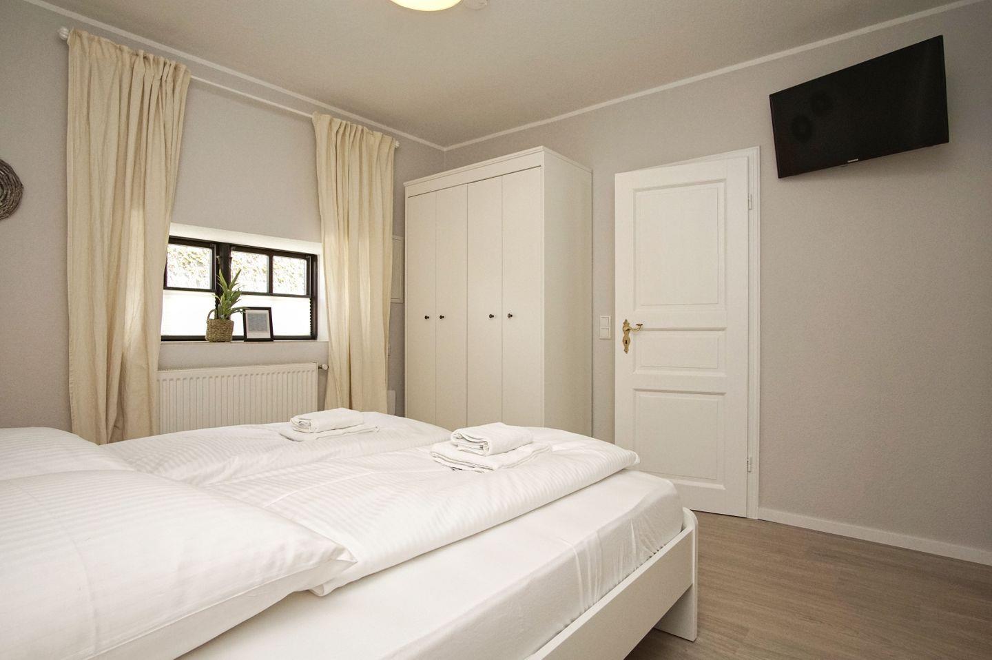 SCHLAFEN// ein separates Schlafzimmer mit Doppelbett und Flachbild-TV ++