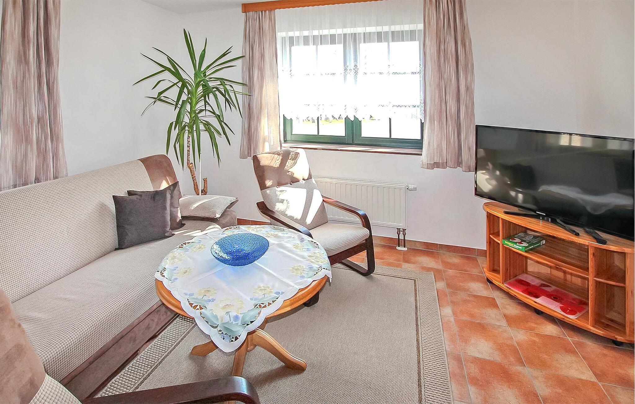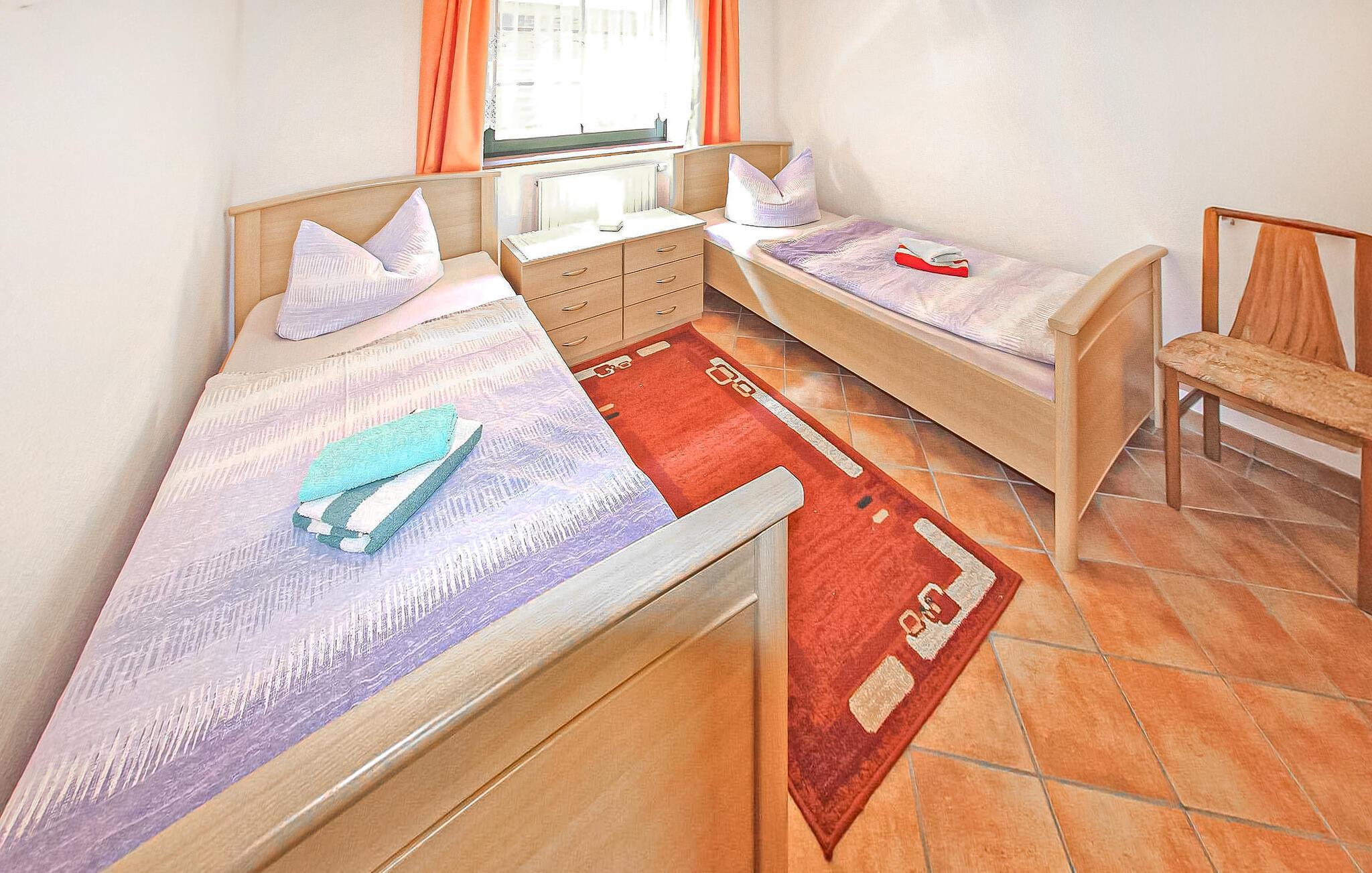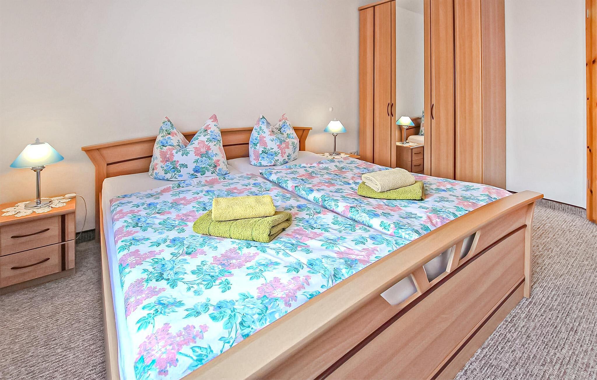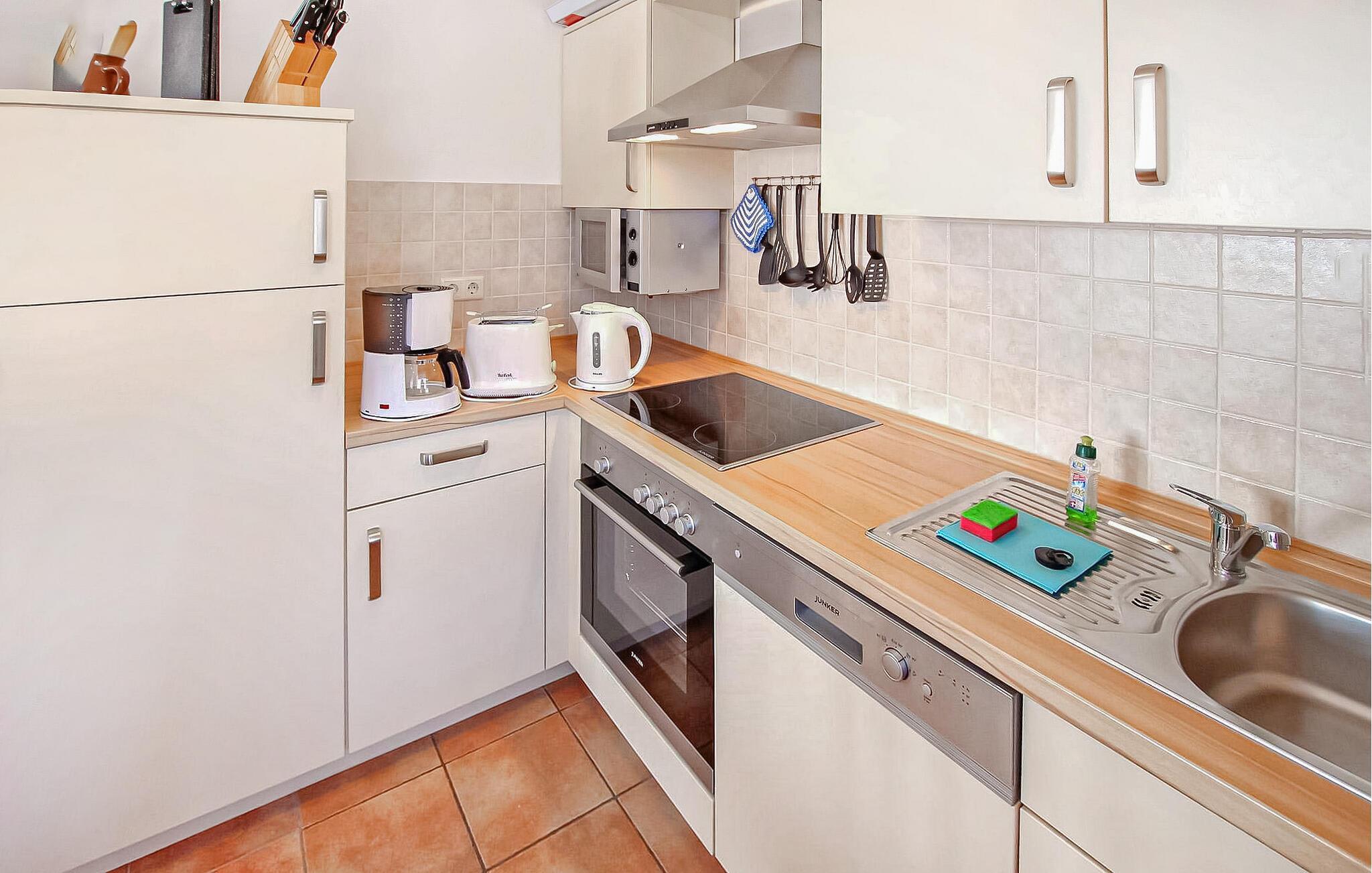 Diese ca. 70 qm große Wohnung für bis zu 5 Personen (4 Erwachsene + 1 Baby) liegt im Erdgeschoss und verfügt über einen großzügigen Wohnbereich (Polstermöbel, Flachbild-TV, Radio) mit offener, voll ausgestatteter Küche (Esszimmer). Tisch für vier Personen, Elektroherd, Backofen, Kühlschrank, Geschirrspüler, Mikrowelle, diverse kleine Küchengeräte), zwei Schlafzimmer (1 x Doppelbett, 1 x zwei Einzelbetten), ein großer Flur und ein Badezimmer mit Dusche/WC.