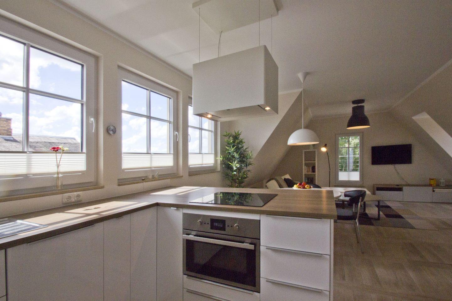 KÜCHE// offene Küche, Essbereich, 4-Platten Induktion, Spülmaschine, Kühlschrank mit Gefrierfach, Backofen, Toaster, Wasserkocher, Kaffeemaschine, reichlich Besteck, Geschirr und Küchenutensilien ++