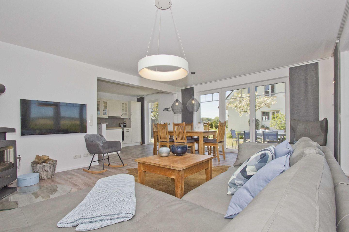 WOHNEN // Wohnraum mit Essbereich, Sitzgarnitur mit bequemer Couch, Kamin, Flachbild-TV ++