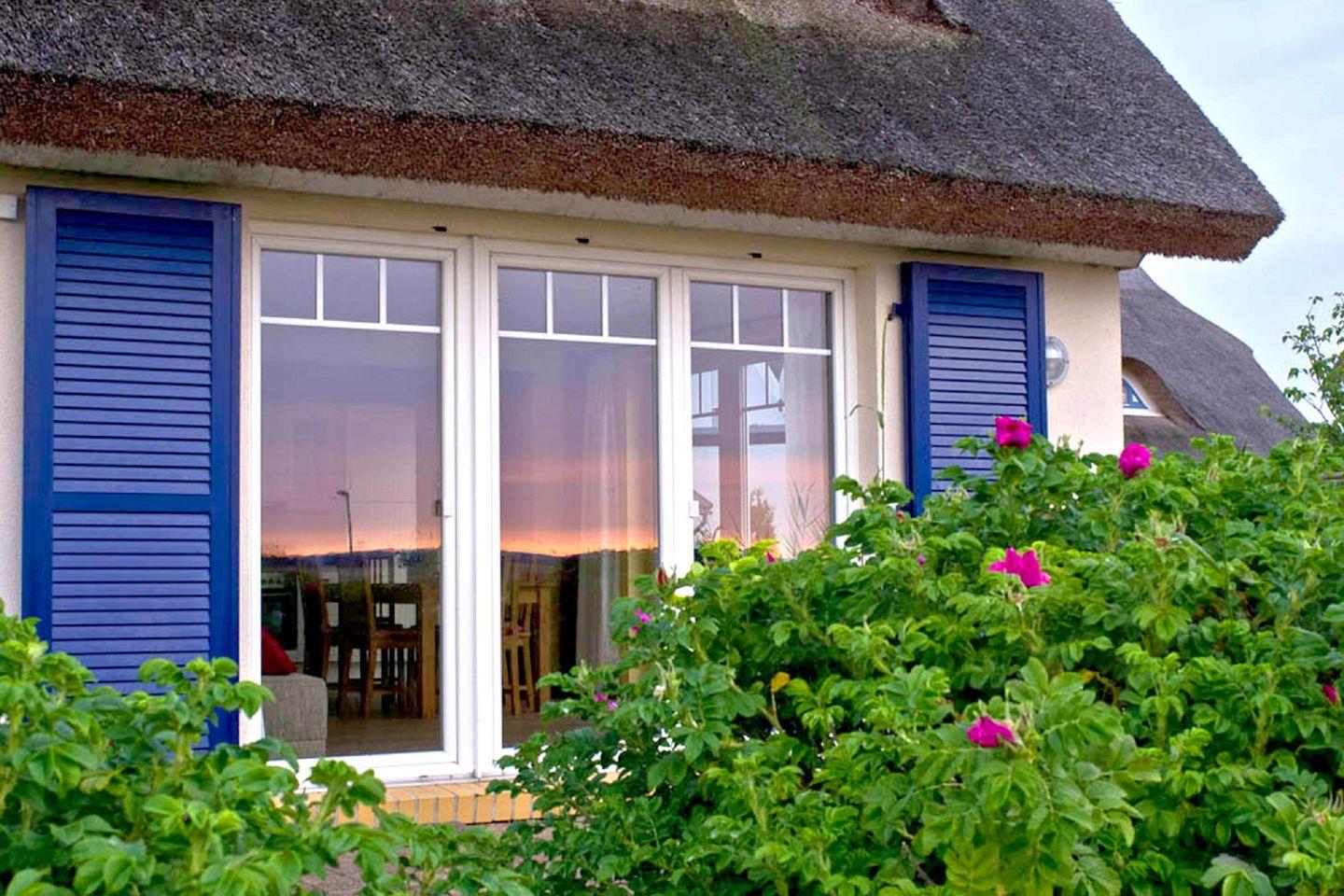 Am Seglerhafen, Terrasse, Garten, Meerblick - Ferienhaus Boddentraum Abendrot
