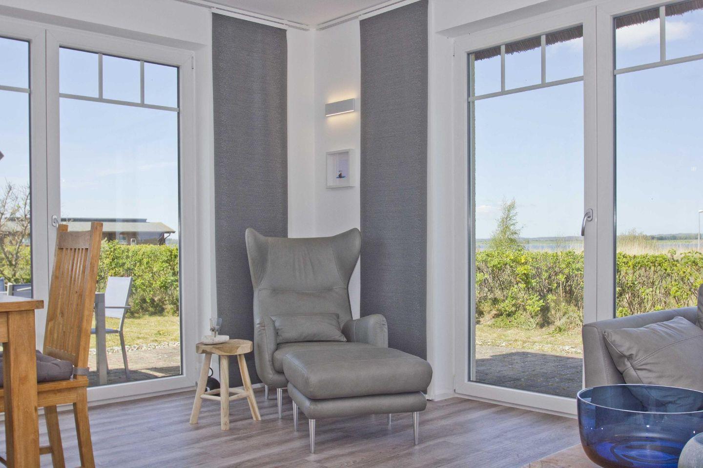 Traumhaftes Ferienhaus Boddentraum Abendrot mit Meerblick, Terrasse, Garten und direkter Lage am Seglerhafen in Gager.