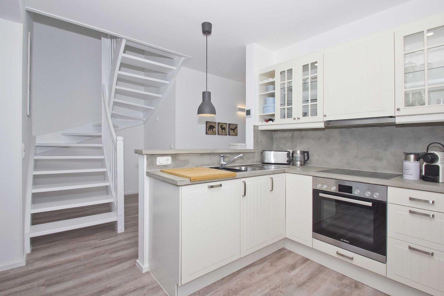 KÜCHE // offene Küche, Backofen, Geschirrspüler, Kühlschrank mit Gefrierfach, Toaster, Wasserkocher, Kaffeemaschine, reichlich Besteck, Geschirr und Küchenutensilien ++