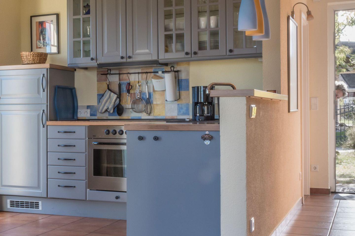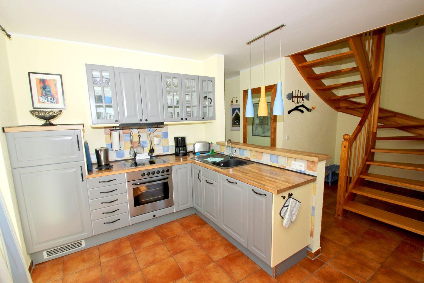 KÜCHE // offene Küche mit Essbereich, Mikrowelle, Backofen, Geschirrspüler, Kühlschrank mit Gefrierfach, Toaster, Wasserkocher, Kaffeemaschine, Waffeleisen, Raclette, reichlich Besteck, Geschirr und Küchenutensilien ++