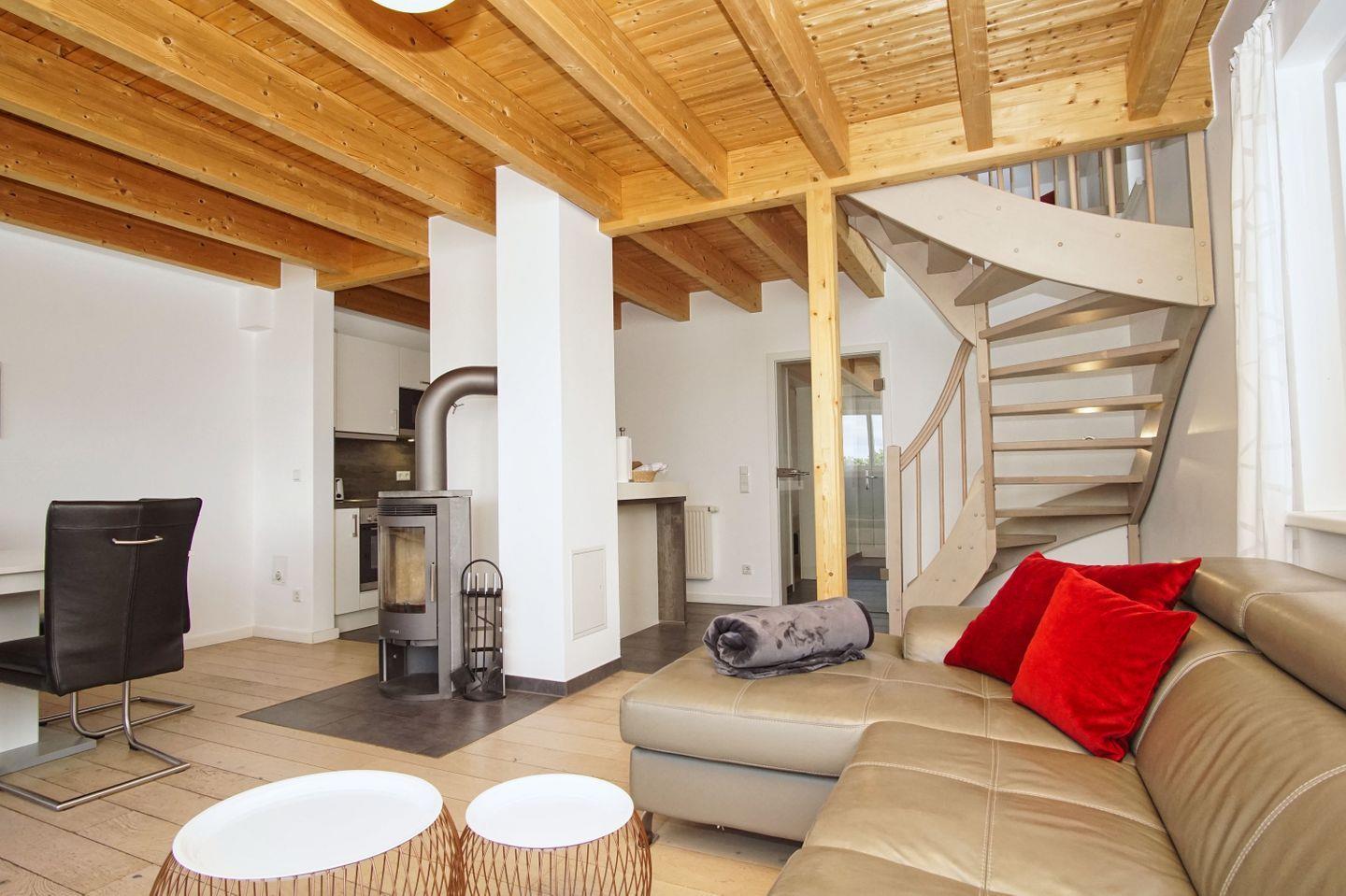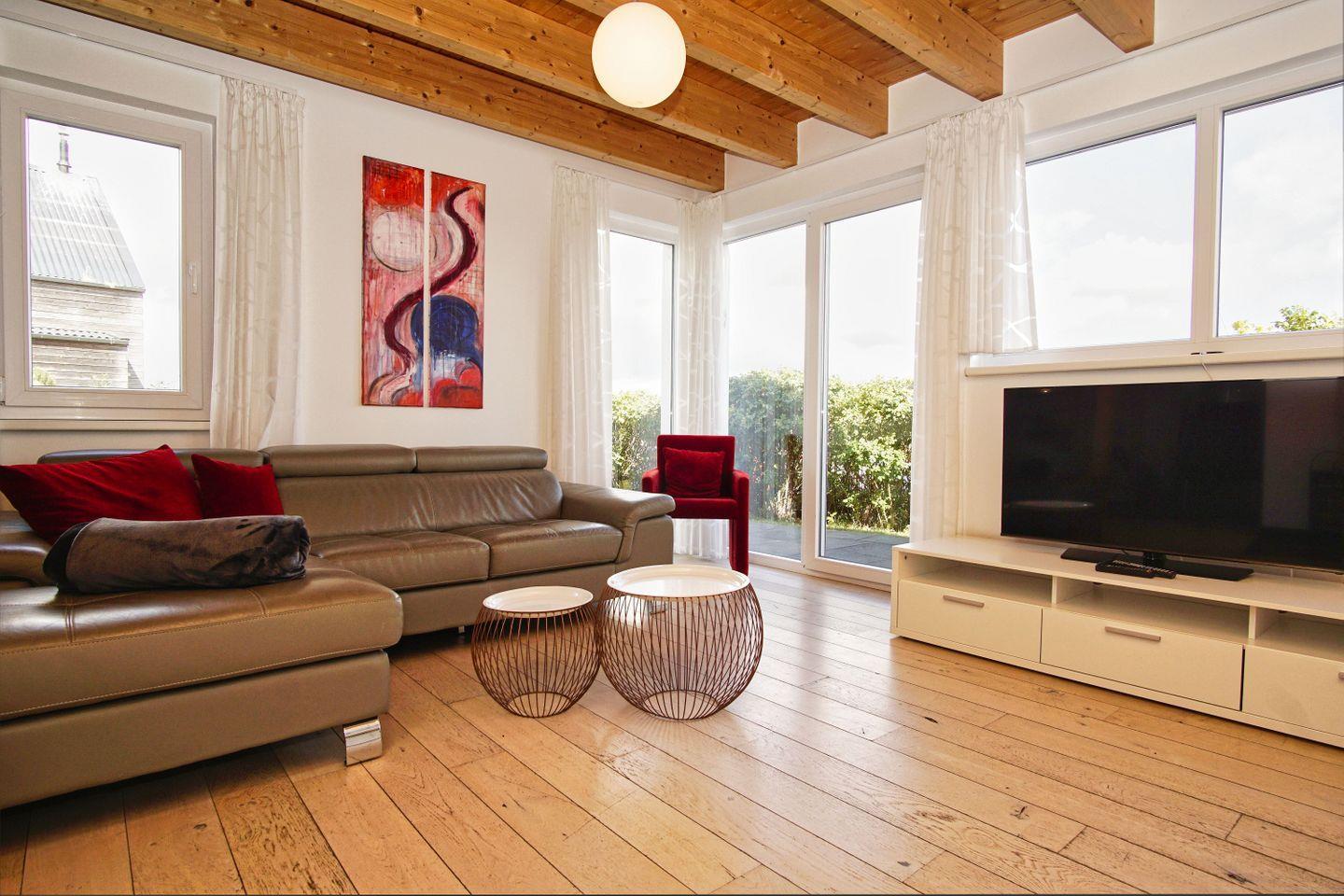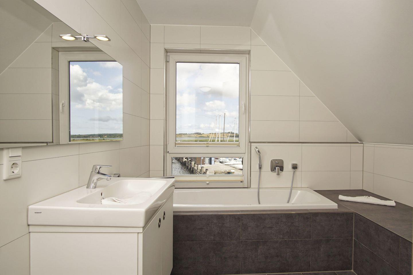 Die Haushälften sind topmodern eingerichtet und komfortabel ausgestattet. Flachbild-TV im Wohnzimmer und in jedem Schlafzimmer, voll ausgestattete Küche, 2 Badezimmer, hauseigene Sauna, Terrasse mit Blick auf den Hafen und die Ostsee und vieles mehr versprechen einen traumhaften Urlaub auf Rügen.