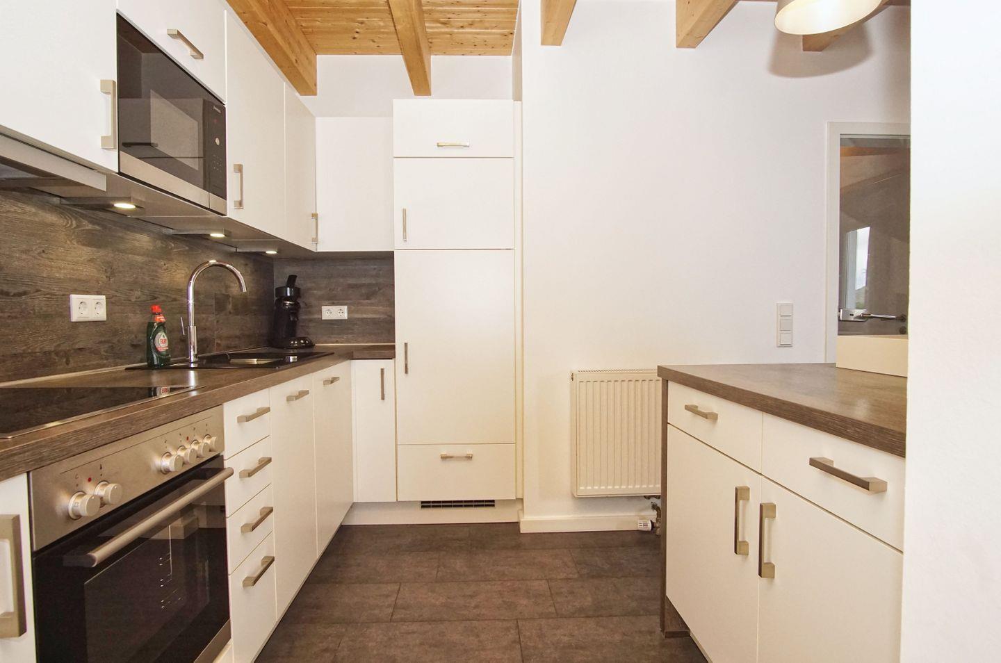 KÜCHE // offene vollausgestattete Küche, Mikrowelle, Backofen, Geschirrspüler, Kühlschrank mit Gefrierfach, Toaster, Wasserkocher, Kaffeemaschine, reichlich Besteck, Geschirr und Küchenutensilien ++