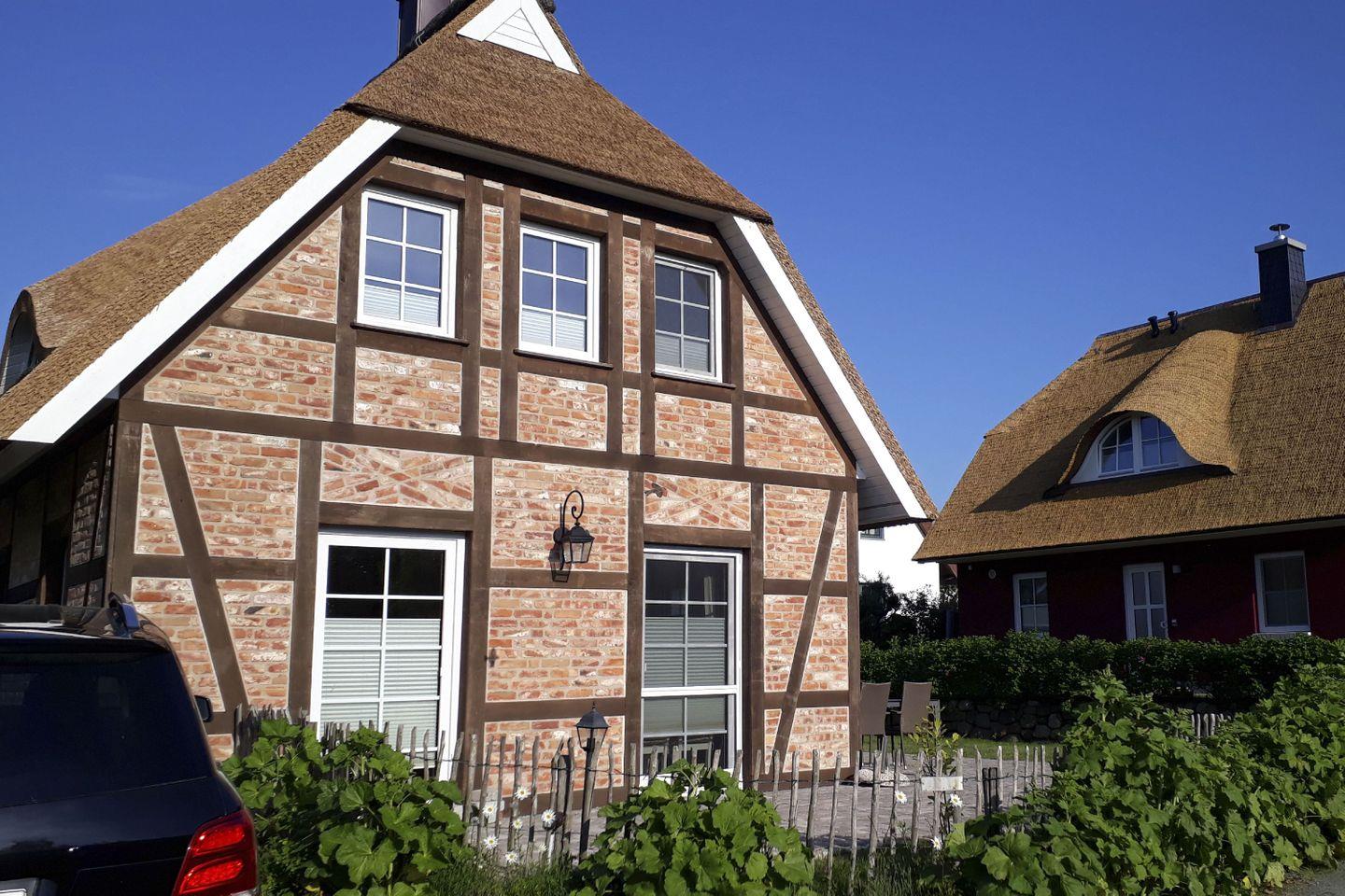 Modernes Ferienhaus Min Hüsung auf Rügen mit Terrasse, Garten und Meerblick für erholsamen Urlaub.