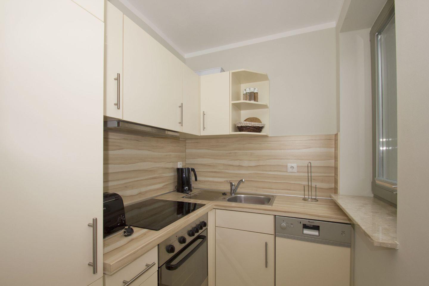 KÜCHE// offene Küche, 4-Platten Ceranherd, Spülmaschine, Kühlschrank mit Gefrierfach, Backofen, Toaster, Wasserkocher, Kaffeemaschine, reichlich Besteck, Geschirr und Küchenutensilien ++