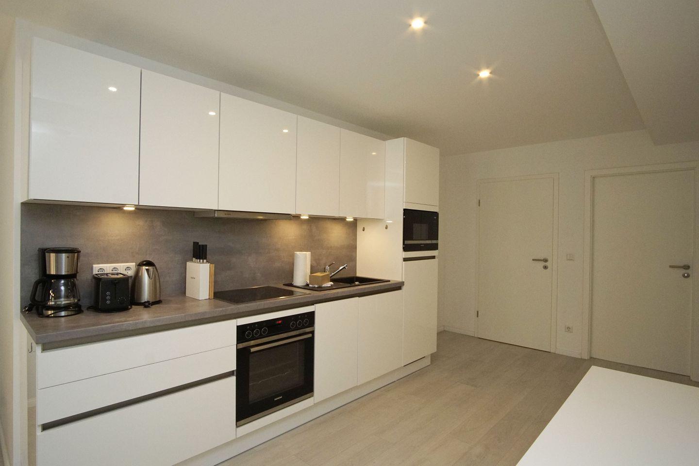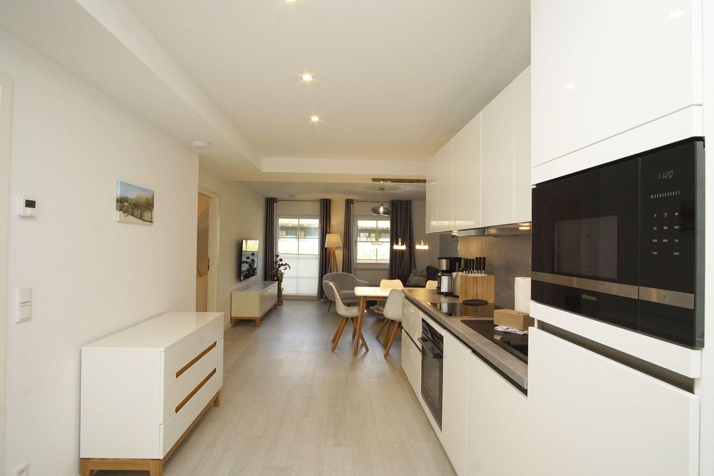 KÜCHE // Küchenzeile, Ceranherd, Spülmaschine, Kühlschrank mit Gefrierfach, Mikrowelle, Toaster, Wasserkocher, Kaffeemaschine, reichlich Besteck, Geschirr und Küchenutensilien ++