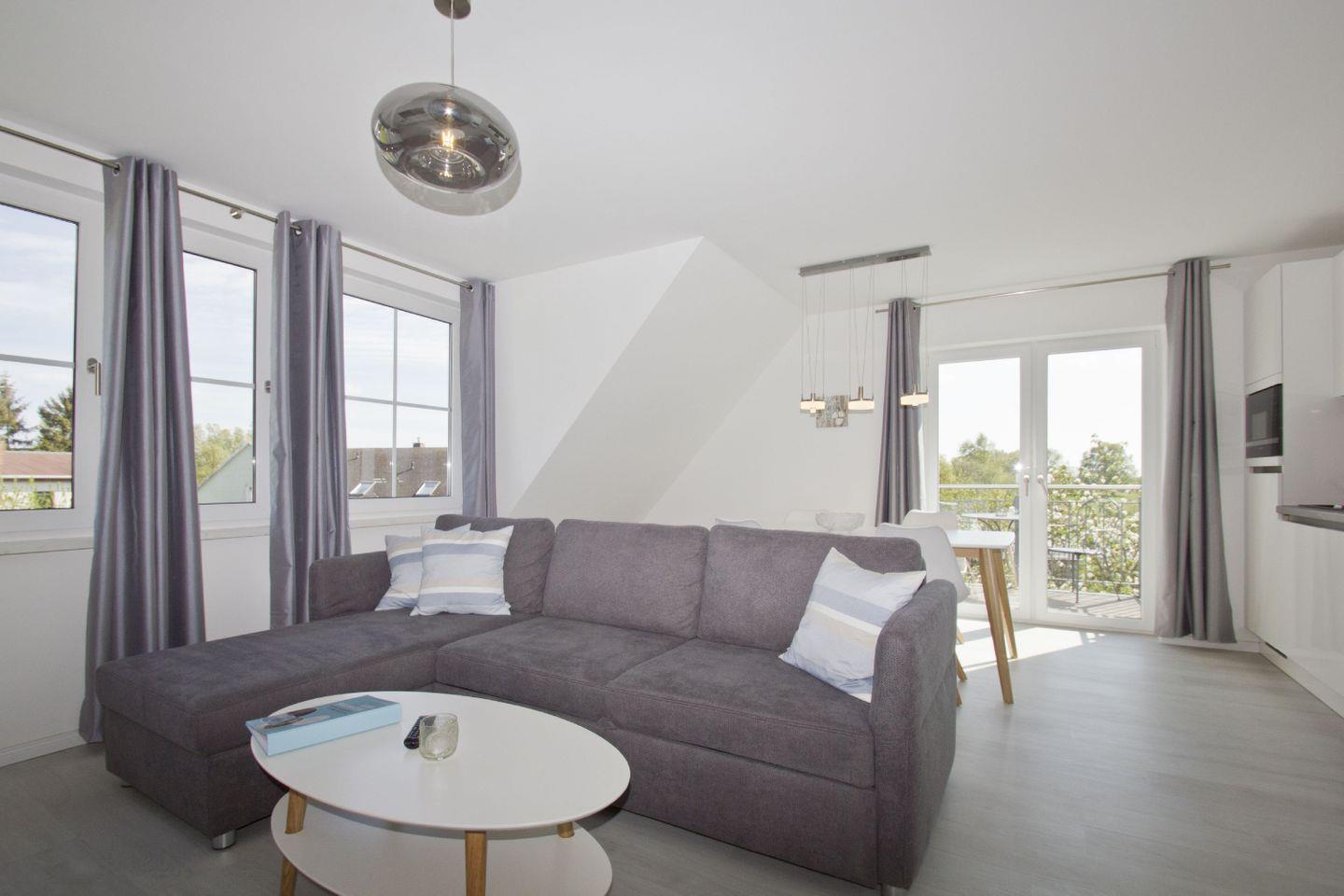 Moderne Ferienwohnung mit Meerblick, Gemeinschaftspool und Sauna in idyllischem Groß Zicker auf Rügen.