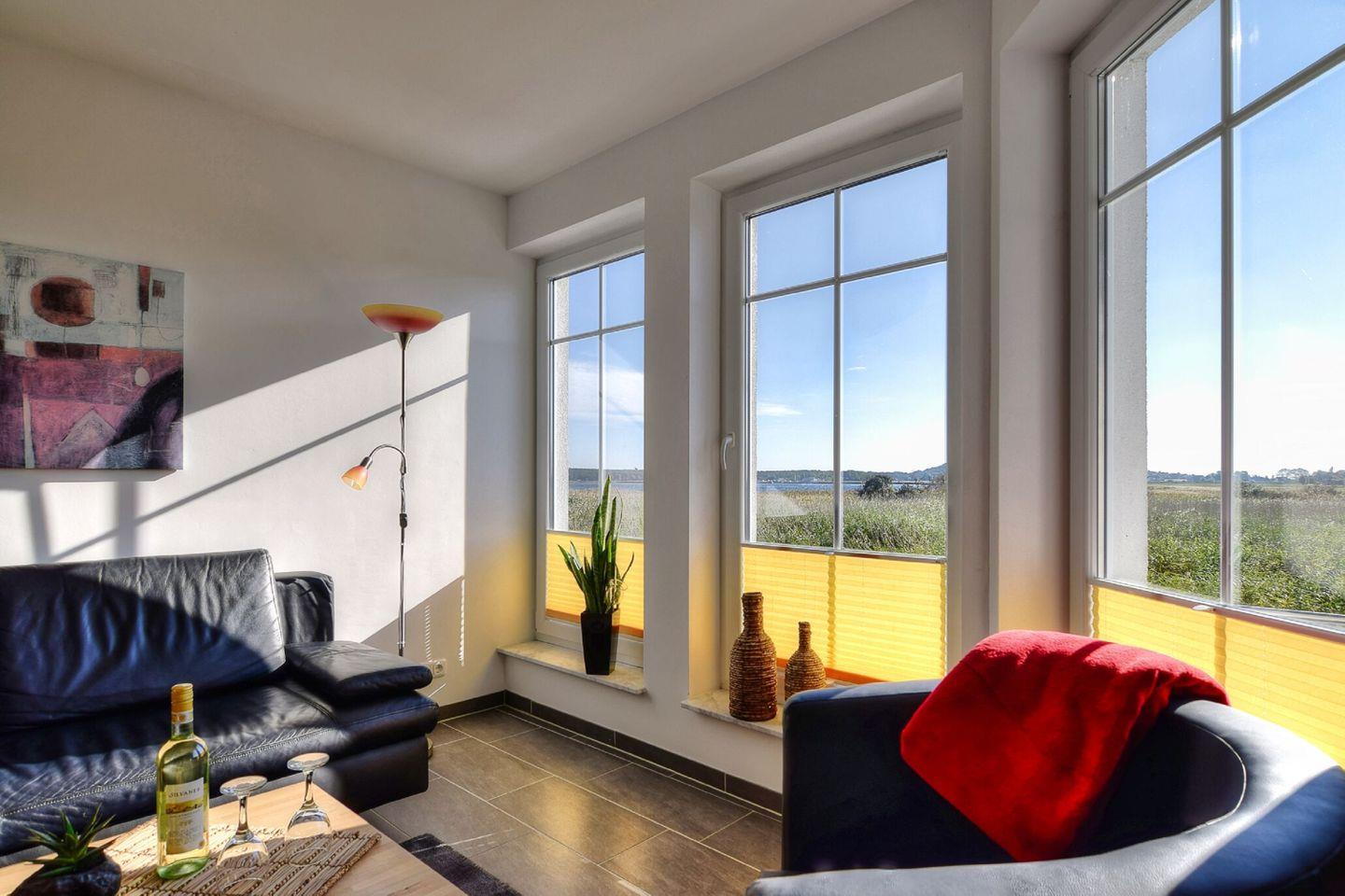 Moderne Ferienwohnung mit Meerblick auf der Halbinsel Klein Zicker, ideal für entspannte Urlaubstage an der Ostsee.