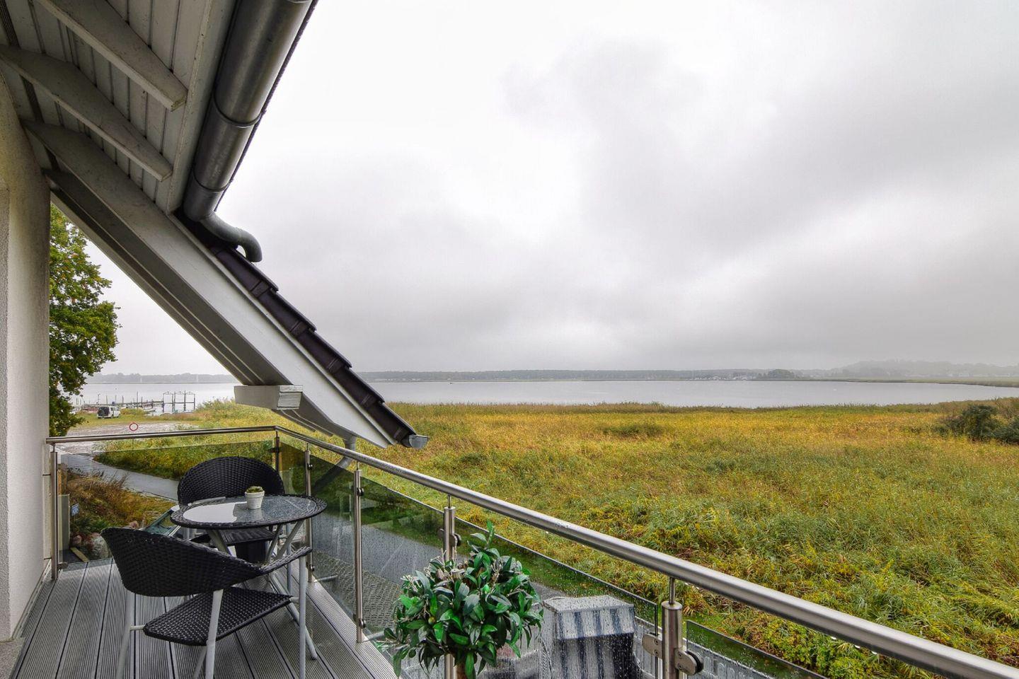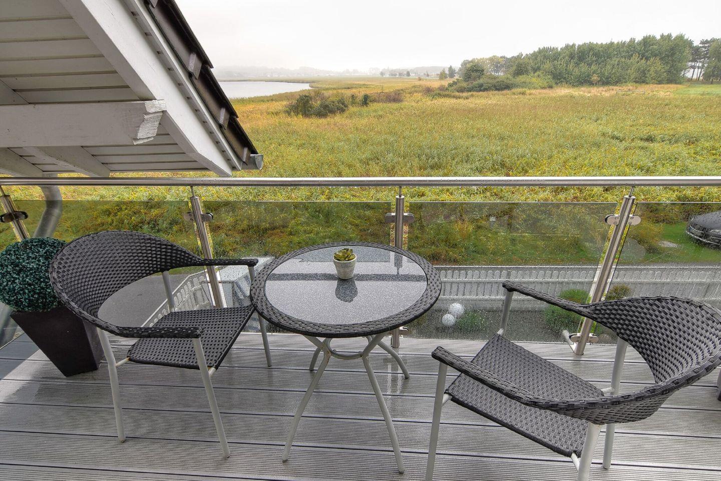 Moderne Ferienwohnung mit Balkon und Meerblick auf der Halbinsel Klein Zicker, ideal für entspannte Tage an der Ostsee.