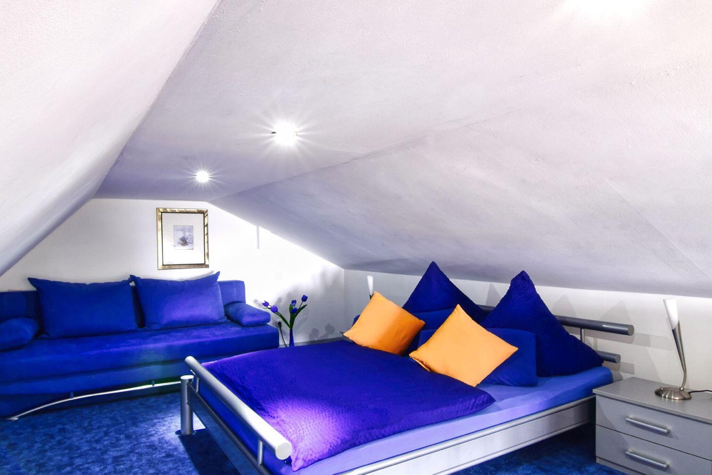 SCHLAFEN // Schlafempore (1,50 m Stehhöhe und mit Dachschräge) mit Doppelbett ++