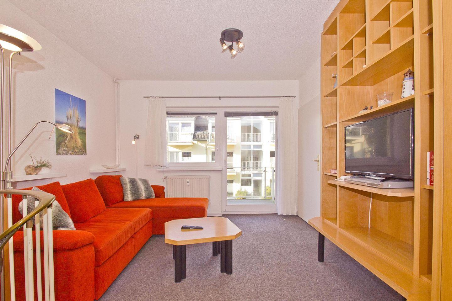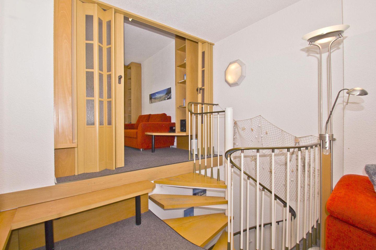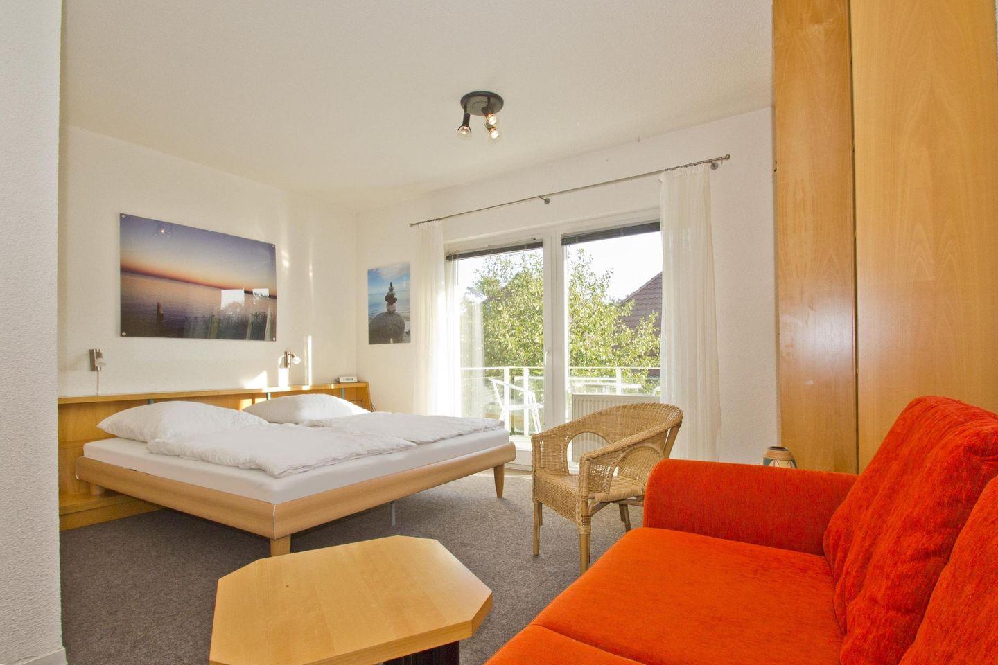 WOHNEN // Wohn-Schlafraum im Obergeschoss mit Schlafcouch, Kabel-TV, Radio, CD-Player, DVD-Player, mit bequemem Doppelbett, Kleiderschrank, Balkon++ ++
