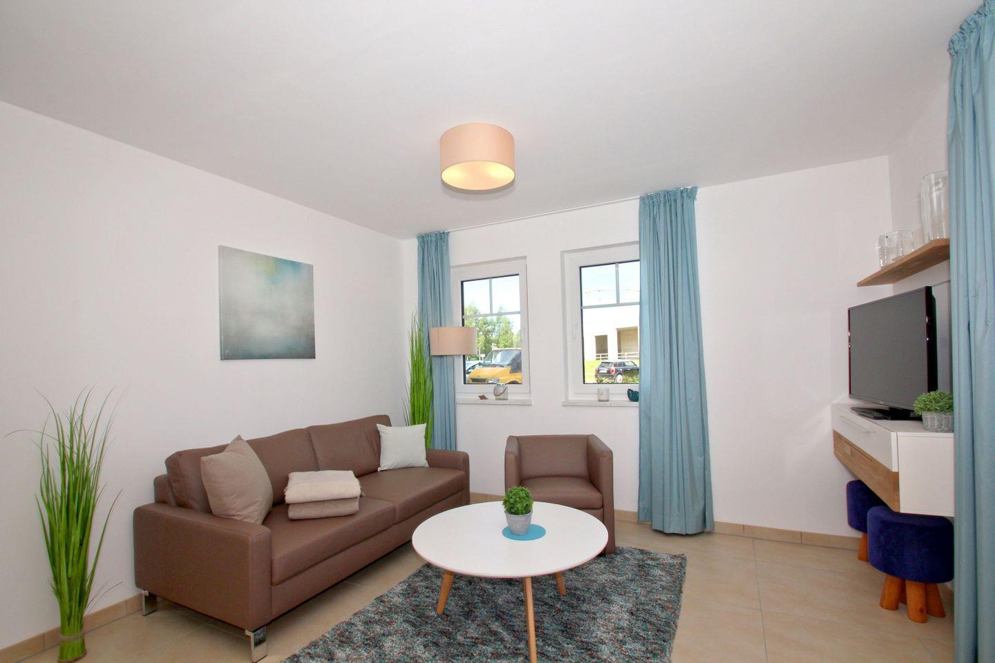 WOHNEN // Wohnraum mit Essbereich, Sitzgarnitur mit bequemer Couch, Flachbild-TV (Sat), Internet (W-LAN) ++