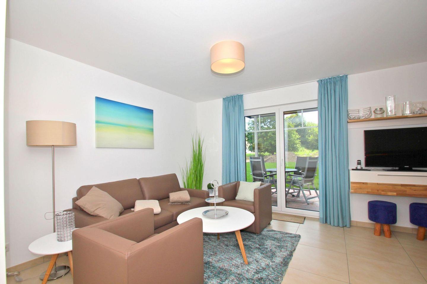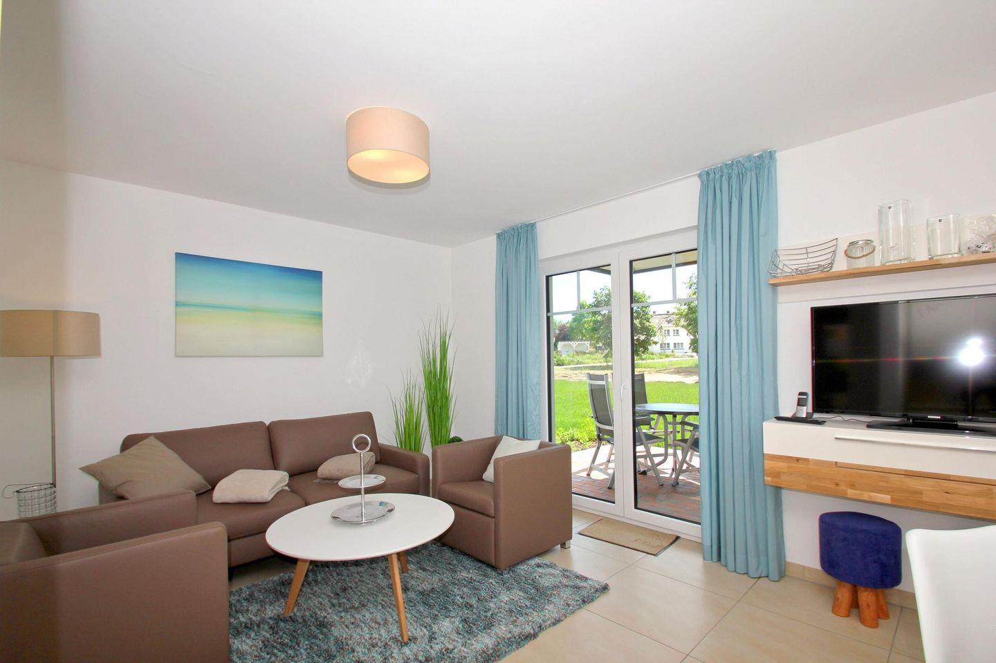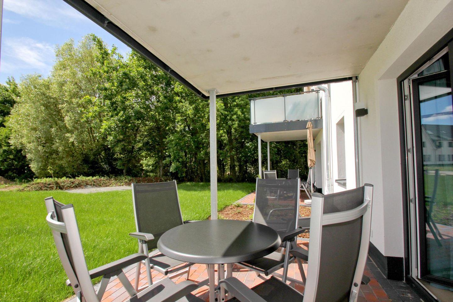 Strandnahe Ferienwohnung mit Terrasse und kostenfreiem Zugang zu Hallenbad und Sauna im Rex Rugia Resort.
