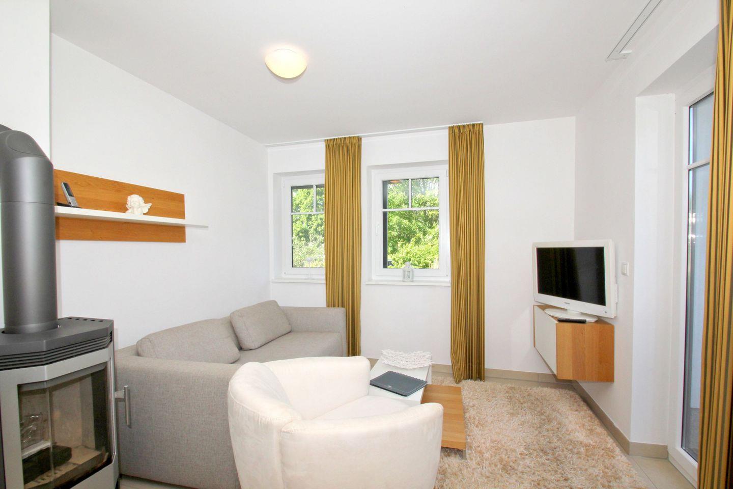 WOHNEN // Wohnraum mit Essbereich, Sitzgarnitur mit bequemer Couch, Kaminofen, Flachbild-TV (Sat), Internet (WLan) ++