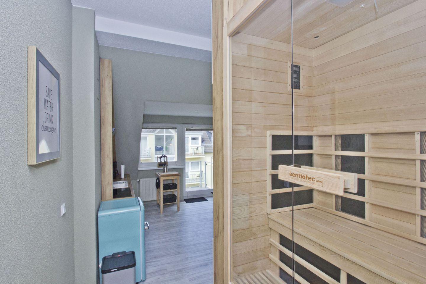 ALLGEMEINE ECKDATEN // 1-Raum-Ferienwohnung für bis zu 2 Personen, 38 m², Strandkorb am Strand (saisonal), eigene Sauna ++