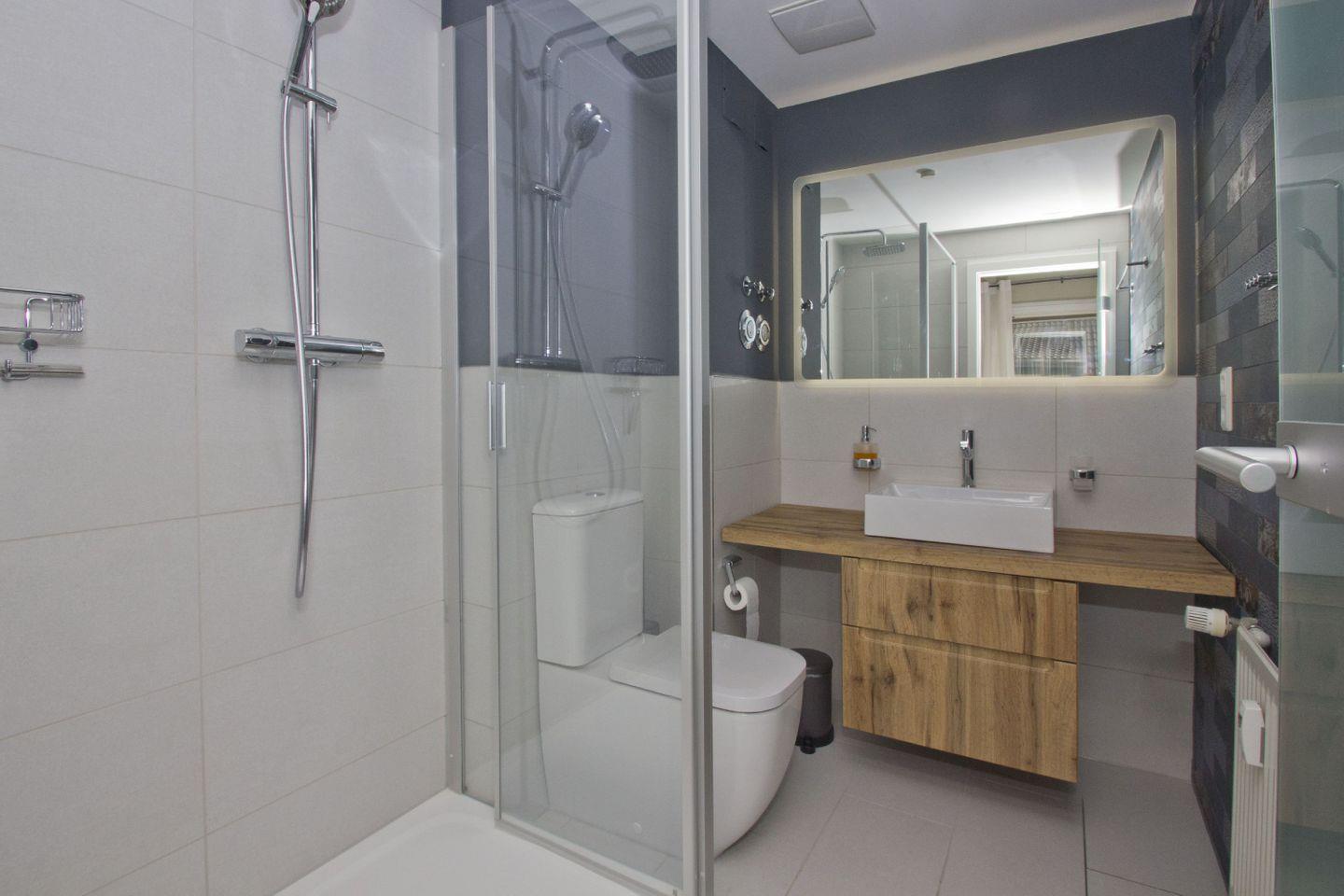 BAD // Badezimmer mit Dusche, Waschtisch, WC und großem Lichtspiegel ++