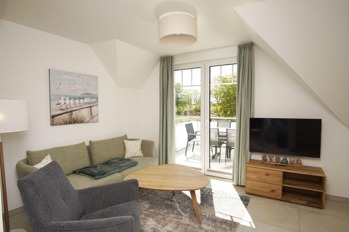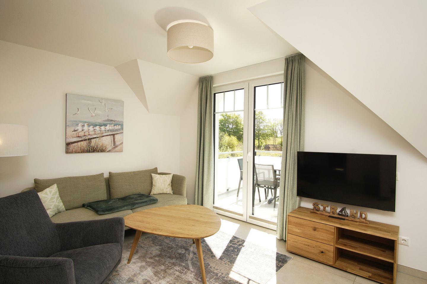 Strandnahe Ferienwohnung mit Balkon im Rex Rugia Resort auf Rügen, inkl. kostenlosem Zugang zum Erlebnisbad und Sauna.