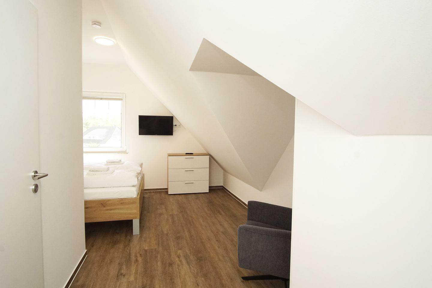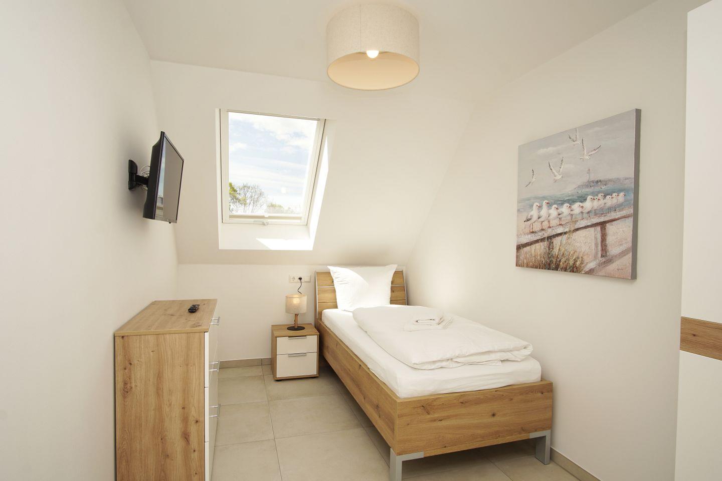 SCHLAFEN // Zwei Schlafzimmer jeweils mit bequemem Doppelbett und Smart-TV, ein Schlafzimmer mit einem Einzelbett, Schreibtisch und Smart-TV,